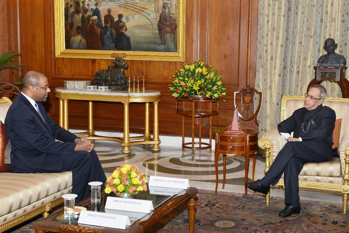 | Caption: | The Ambassador-Designate of Jamaica, HE Mr Clement Philip Ricardo Allicock presenting his credential to the President of India, Shri Pranab Mukherjee at Rashtrapati Bhavan in New Delhi on Oct 21, 2014 |