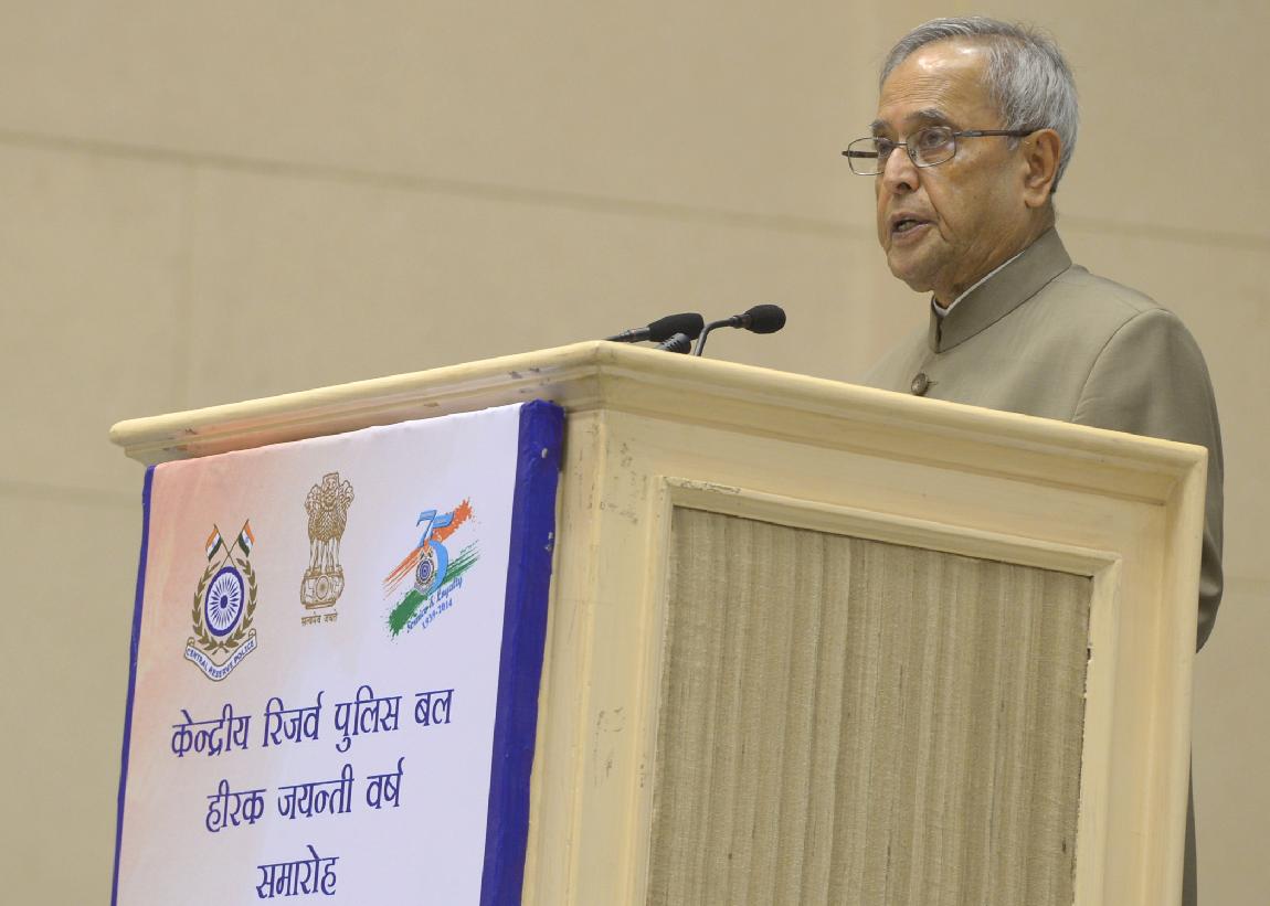 | Caption: | The President of India, Shri Pranab Mukherjee at the Golden Jubilee Celebrations of Central Reserved Police Force at Vigyan Bhavan in New Delhi on Feb 28, 2014 |