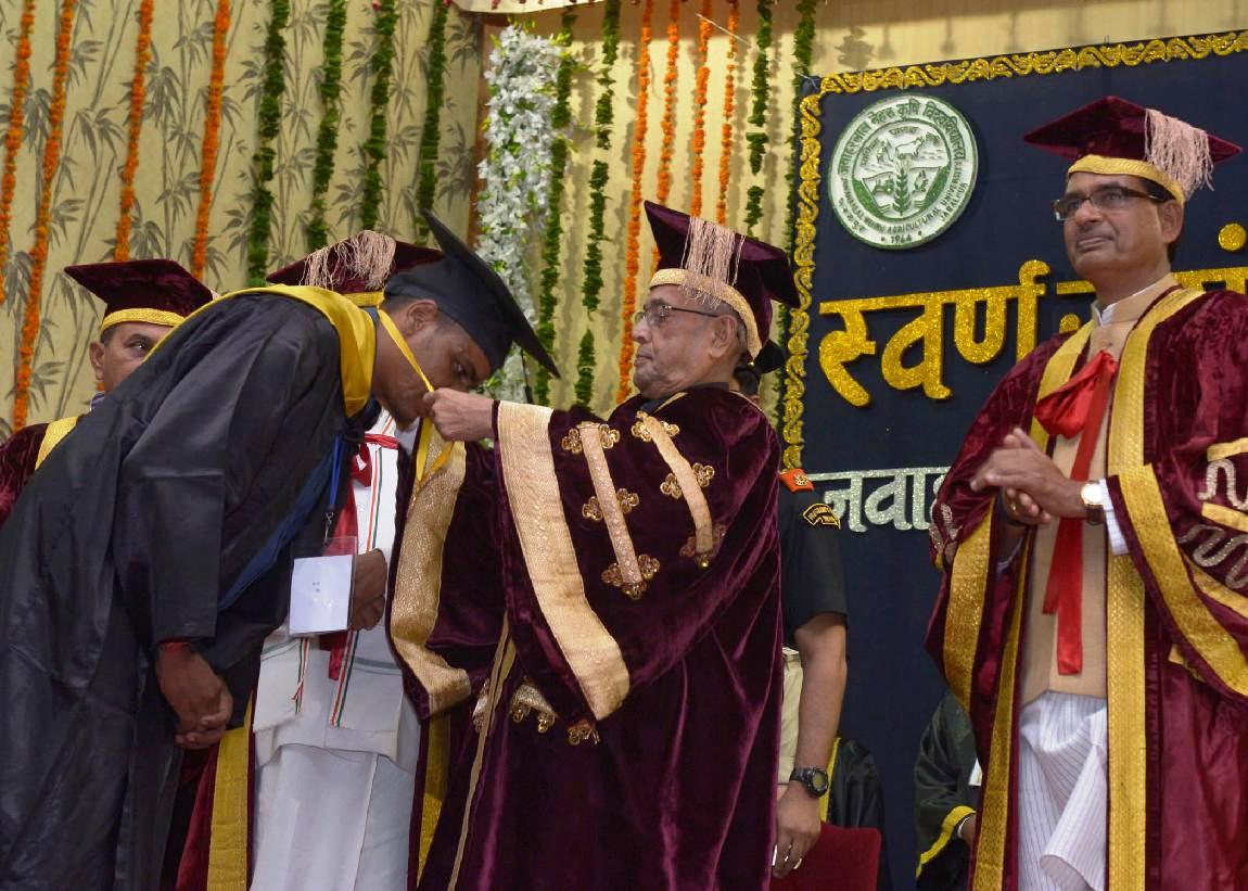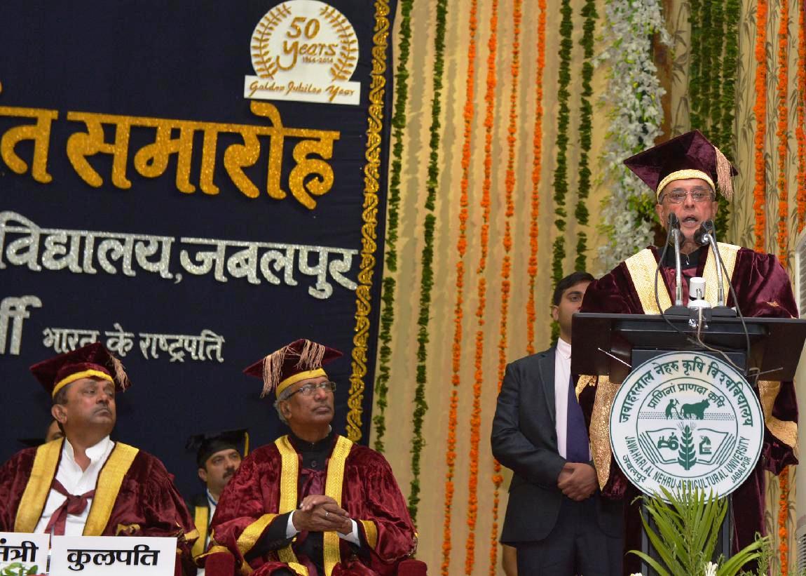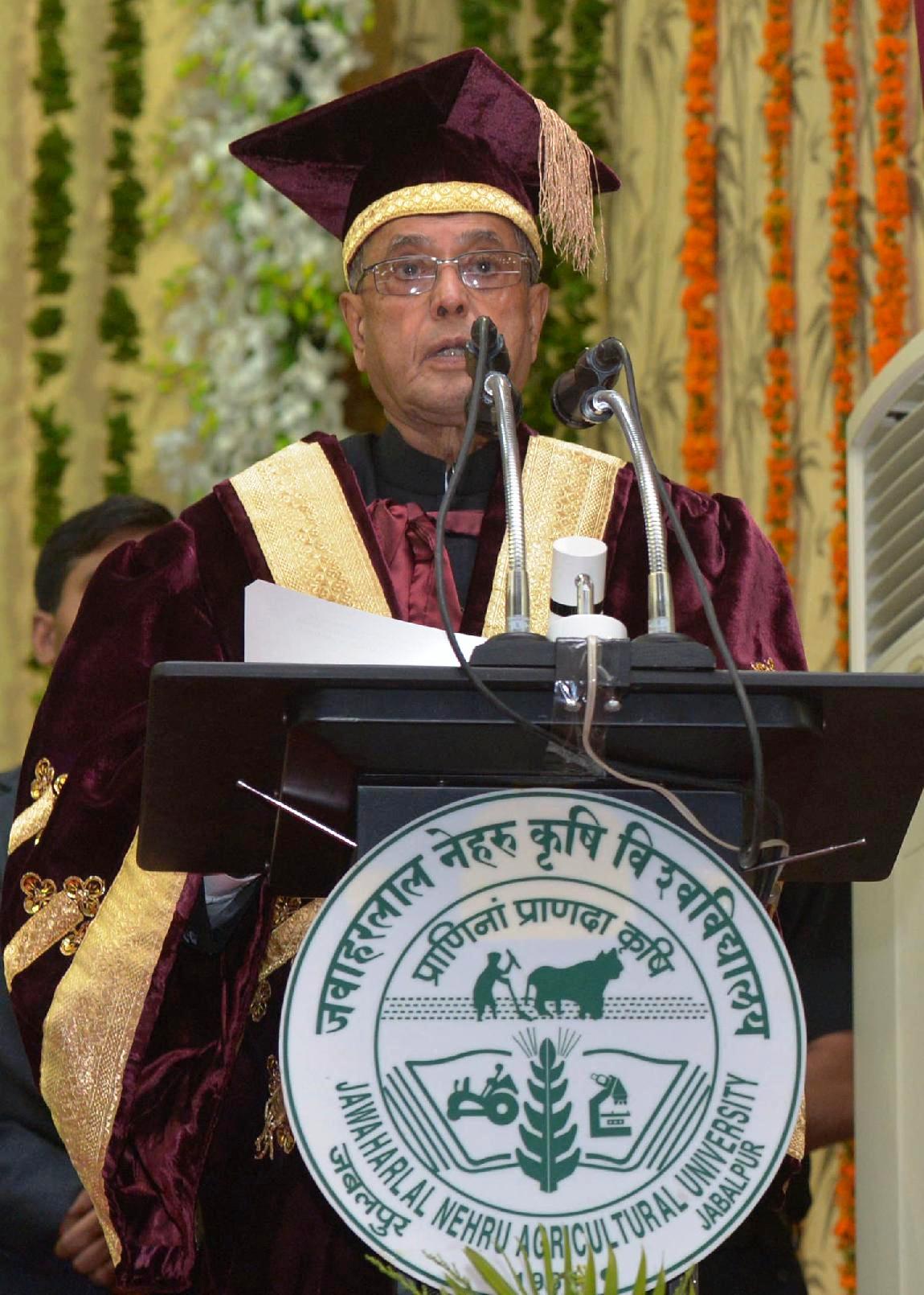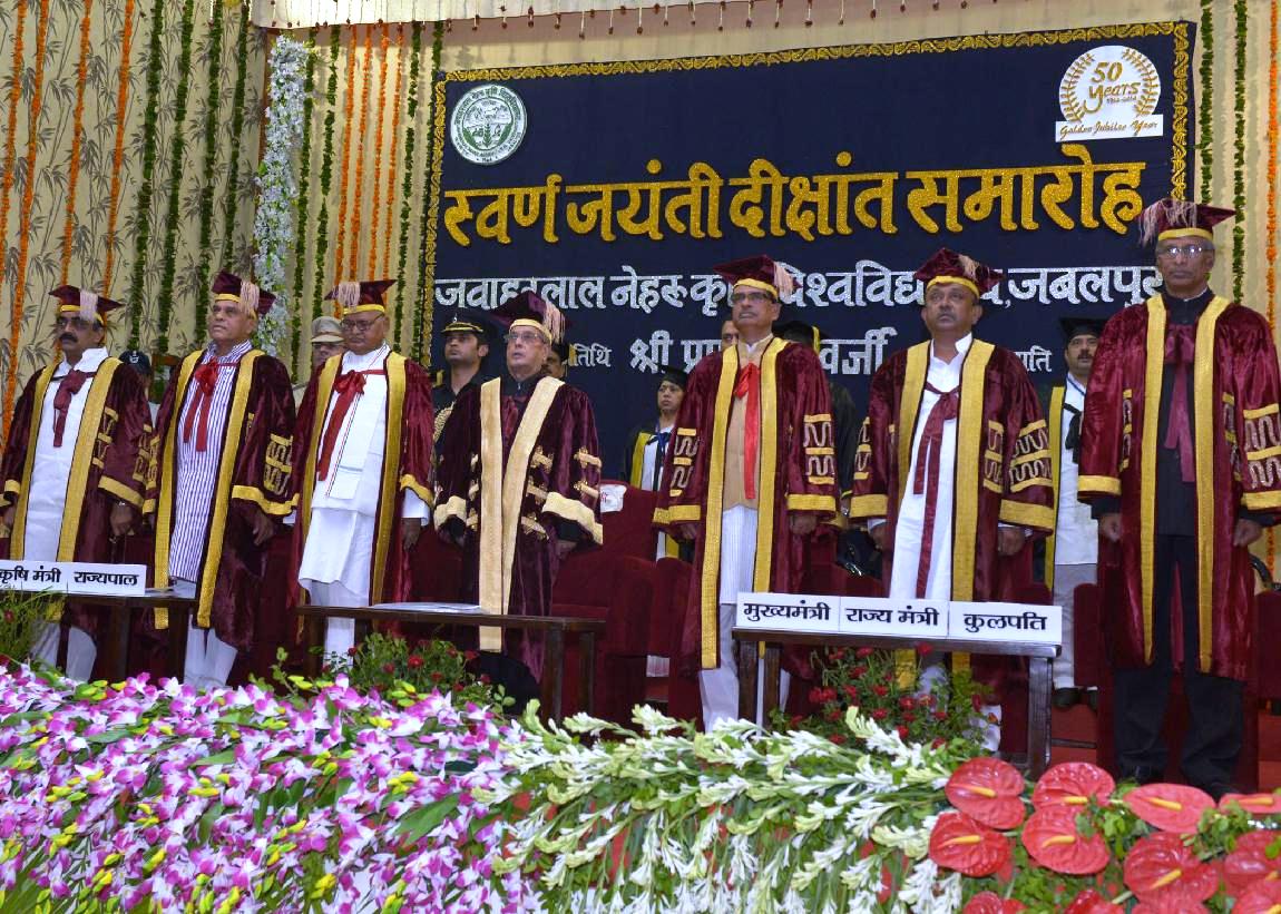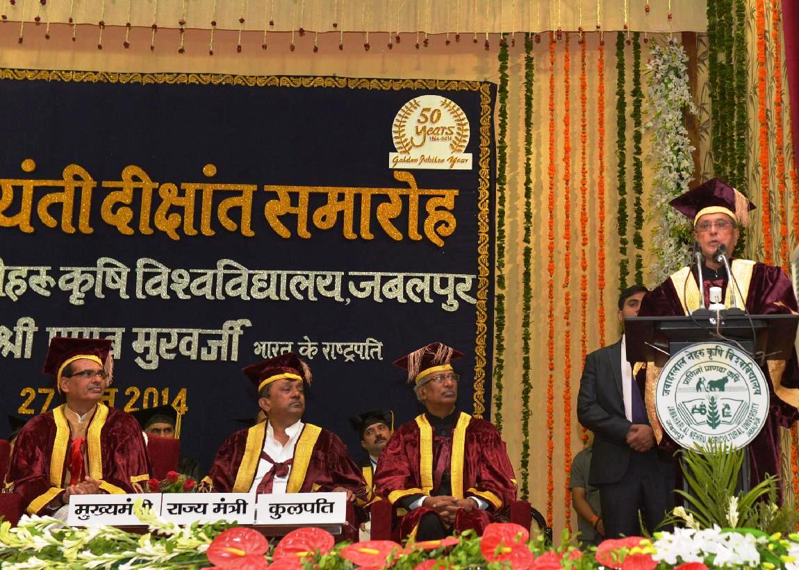 | Caption: | The President of India, Shri Pranab Mukherjee gracing the Golden Jubilee Convocation of Jawaharlal Nehru Krishi Vishwa Vidyalaya at Jabalpur in Madhya Pradesh on June 27, 2014 |