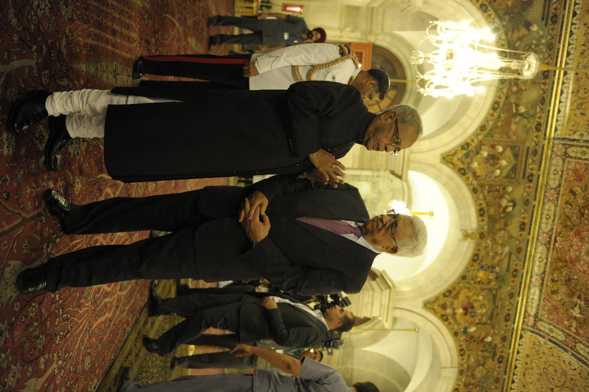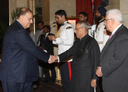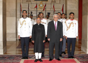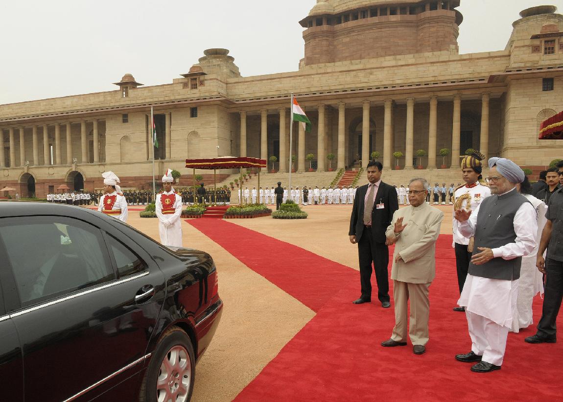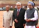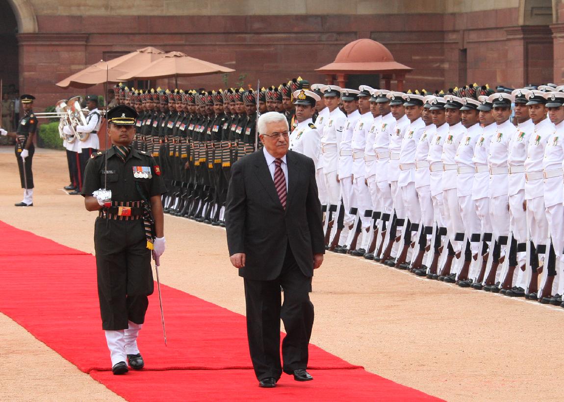 | Caption: | The President of India, Shri Pranab Mukherjee and The Prime Minister, Dr Manmohan Singh receives HE Mr Mahmoud Abbas, President of Palestinian National Authority of the State of Palestine during his Ceremonial Reception at Rashtrapati Bhavan on September 11, 2012 |
