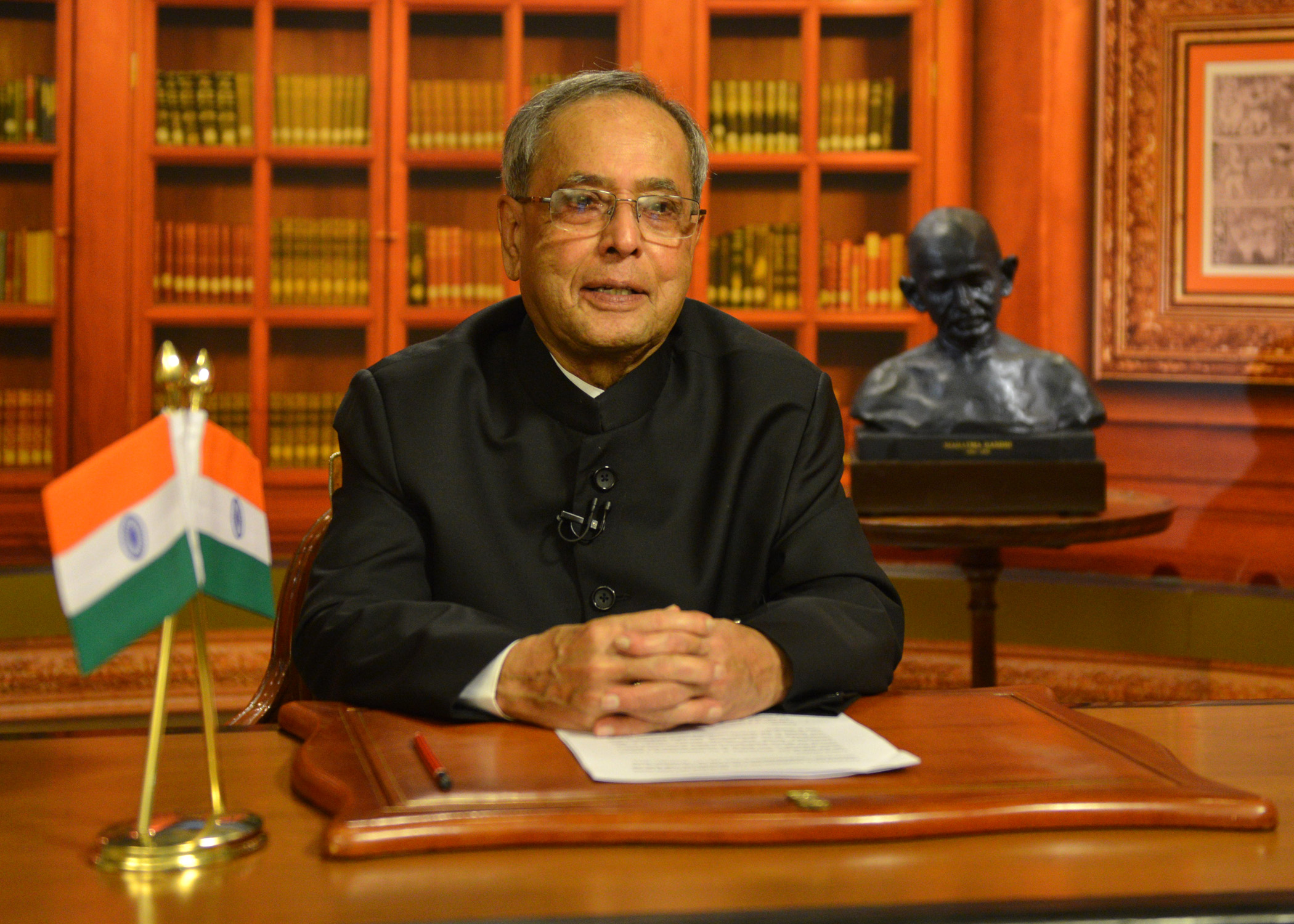 | Caption: | The President of India, Shri Pranab Mukherjee addressing to the Nation on the eve of India 68th Independence Day at Rashtrapati Bhavan in New Delhi on August 13, 2014 |