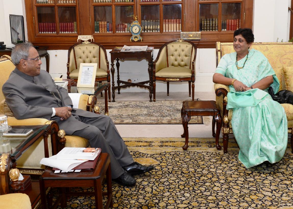 | Caption: | The Former External Affairs Minister, Mrs Suganthie Kadirgamar calling on the President of India, Shri Pranab Mukherjee at Rashtrapati Bhavan in New Delhi on March 06, 2013 |