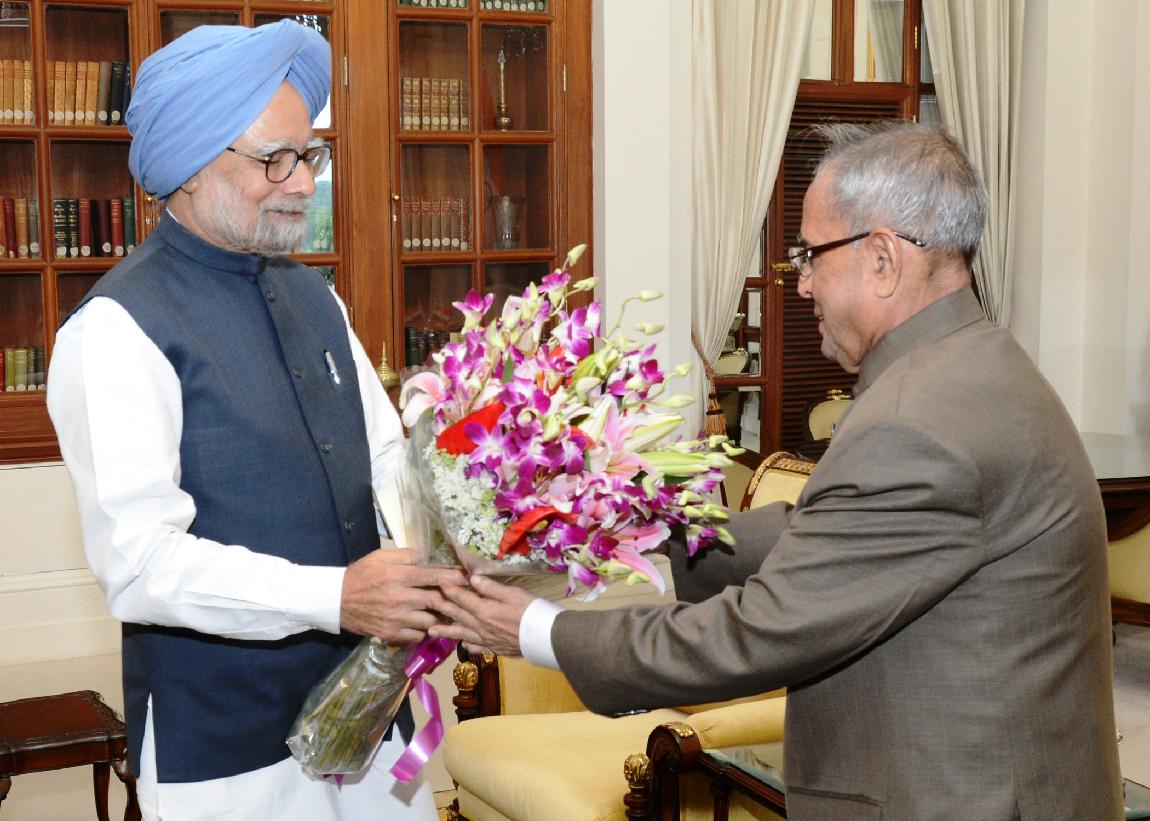 | Caption: | The Prime Minister, Dr Manmohan Singh calling on the President of India, Shri Pranab Mukherjee at Rashtrapati Bhavan in New Delhi on May 17, 2014 |