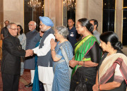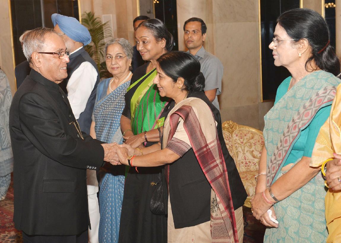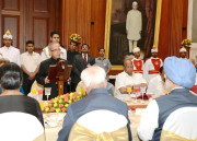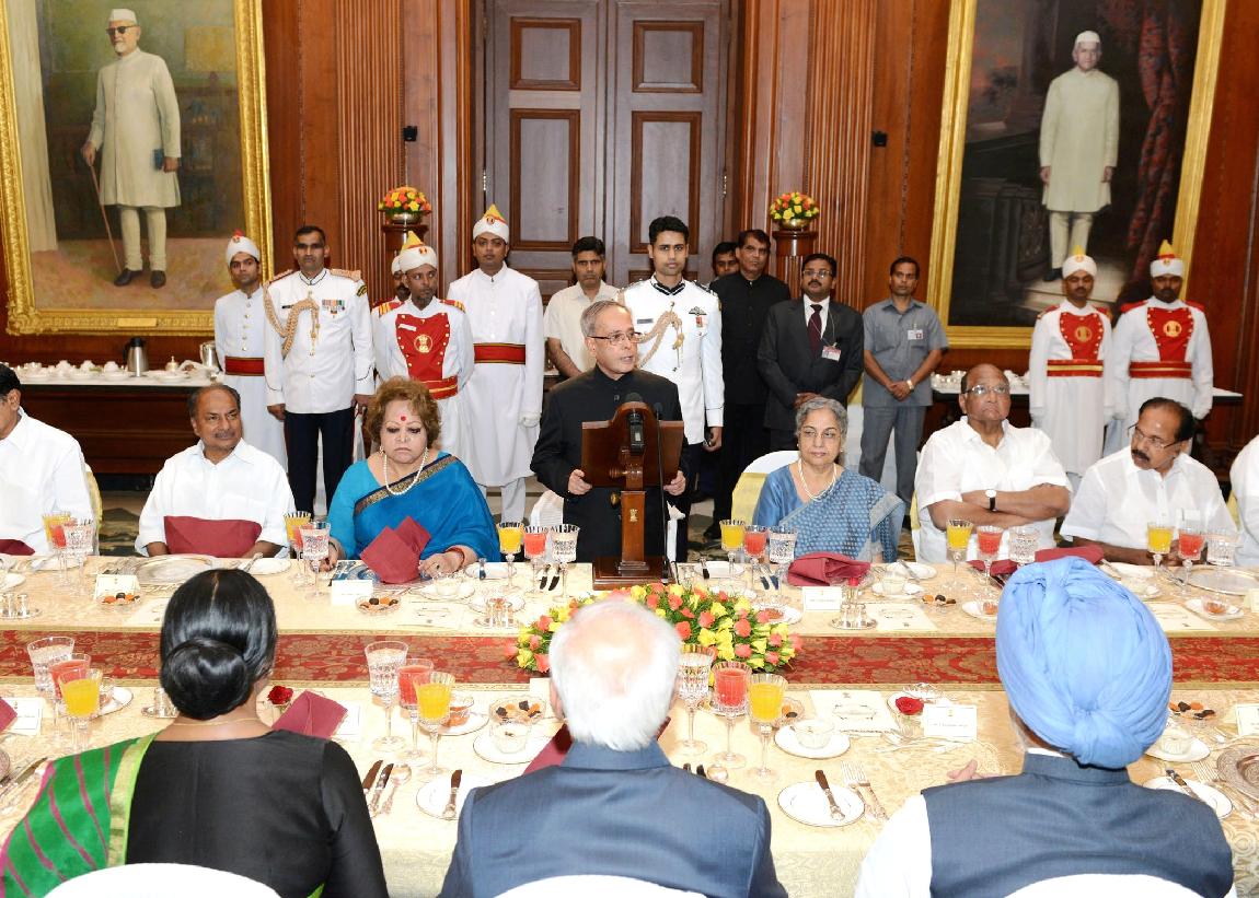 | Caption: | The President of India, Shri Pranab Mukherjee at the Dinner Hosted by him in Honour of the Prime Minister and the Outgoing Union Council of Ministers at Rashtrapati Bhavan in New Delhi on May 17, 2014 |
