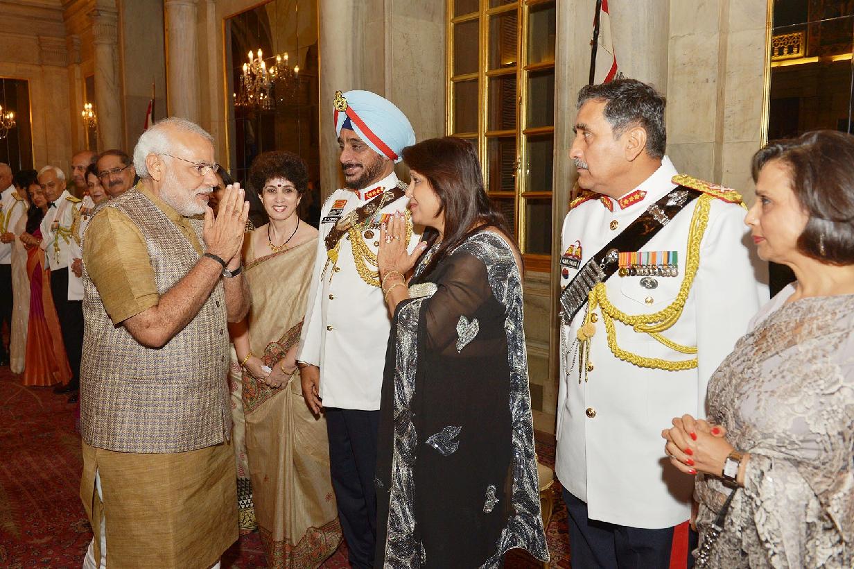 | Caption: | The President of India, Shri Pranab Mukherjee during hosting a Dinner to Commanders-in-Chiefs who Participated in Combined Commanders Conference at Rashtrapati Bhavan in New Delhi on Oct 18, 2014 |