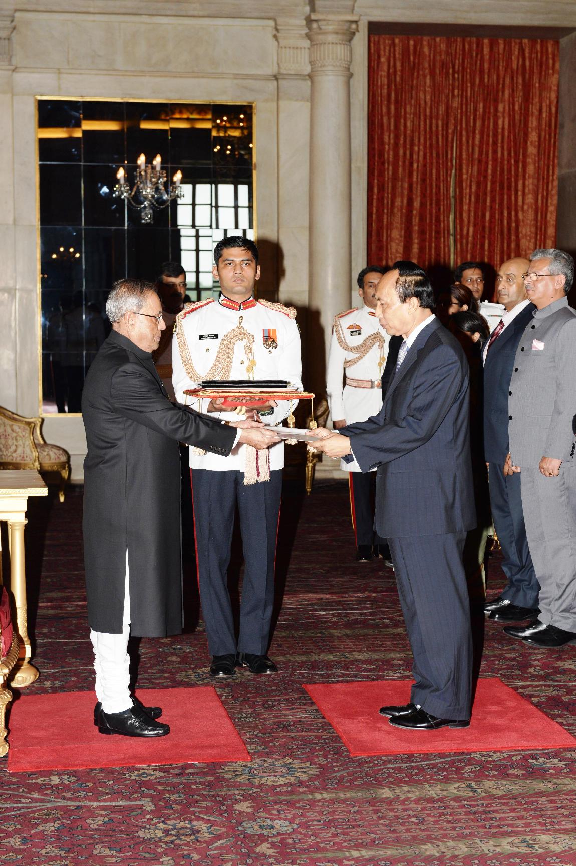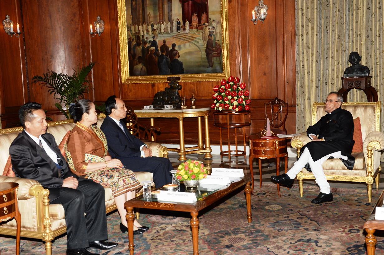 | Caption: | The Ambassador-Designate of Lao PDR, HE Mr Southam Sakonninhom presenting his credential to the President of India, Shri Pranab Mukherjee at Rashtrapati Bhavan in New Delhi on July 31, 2014 |