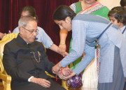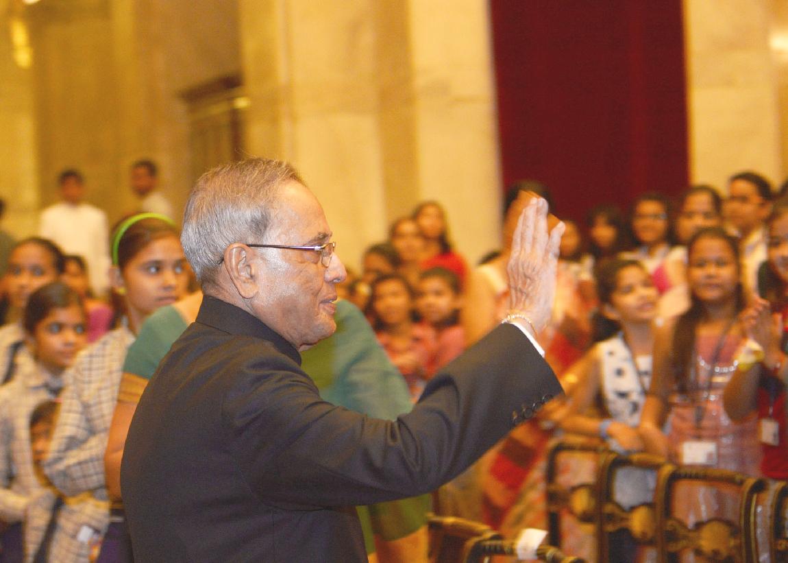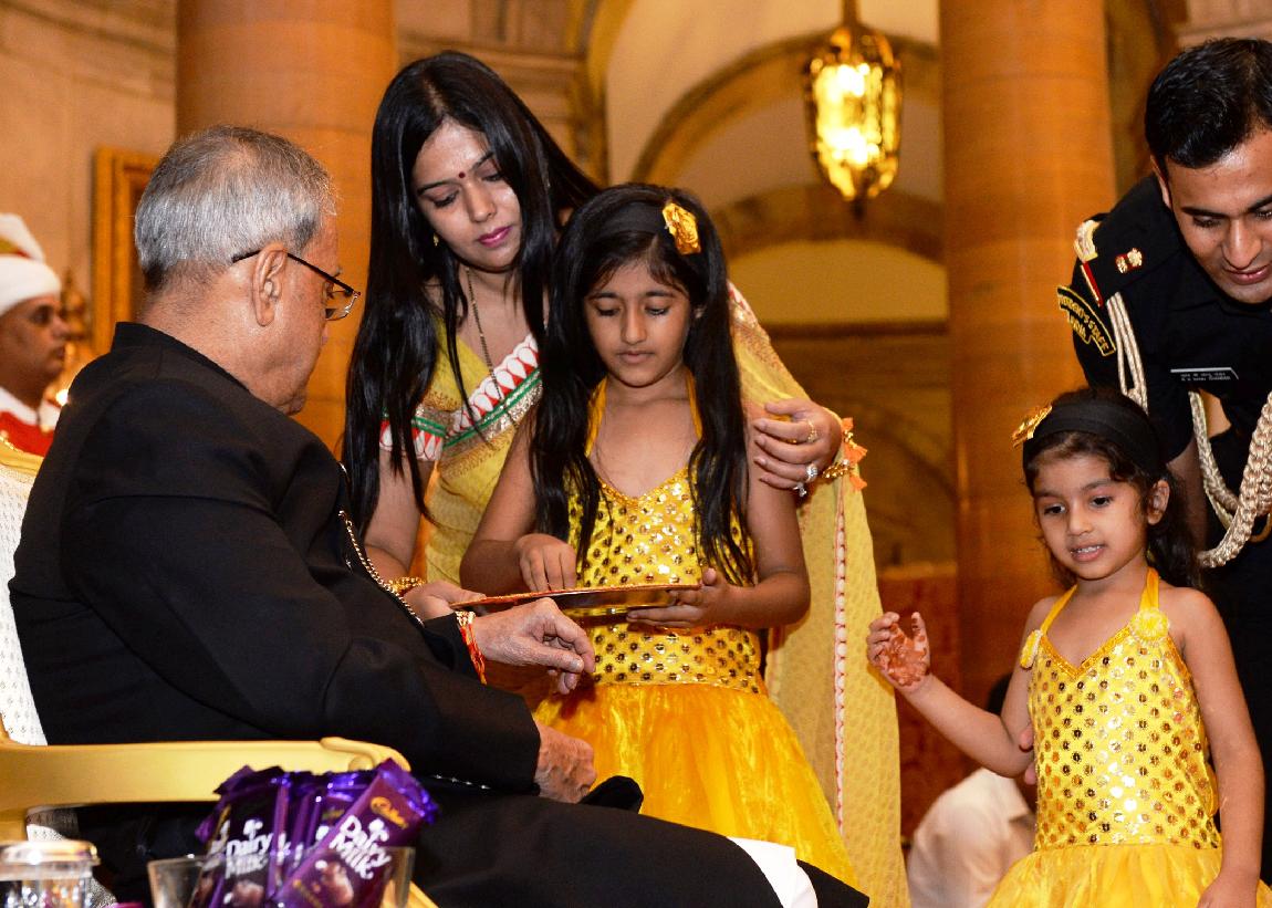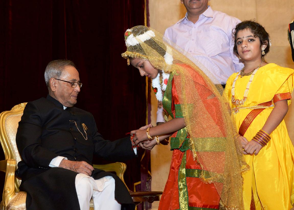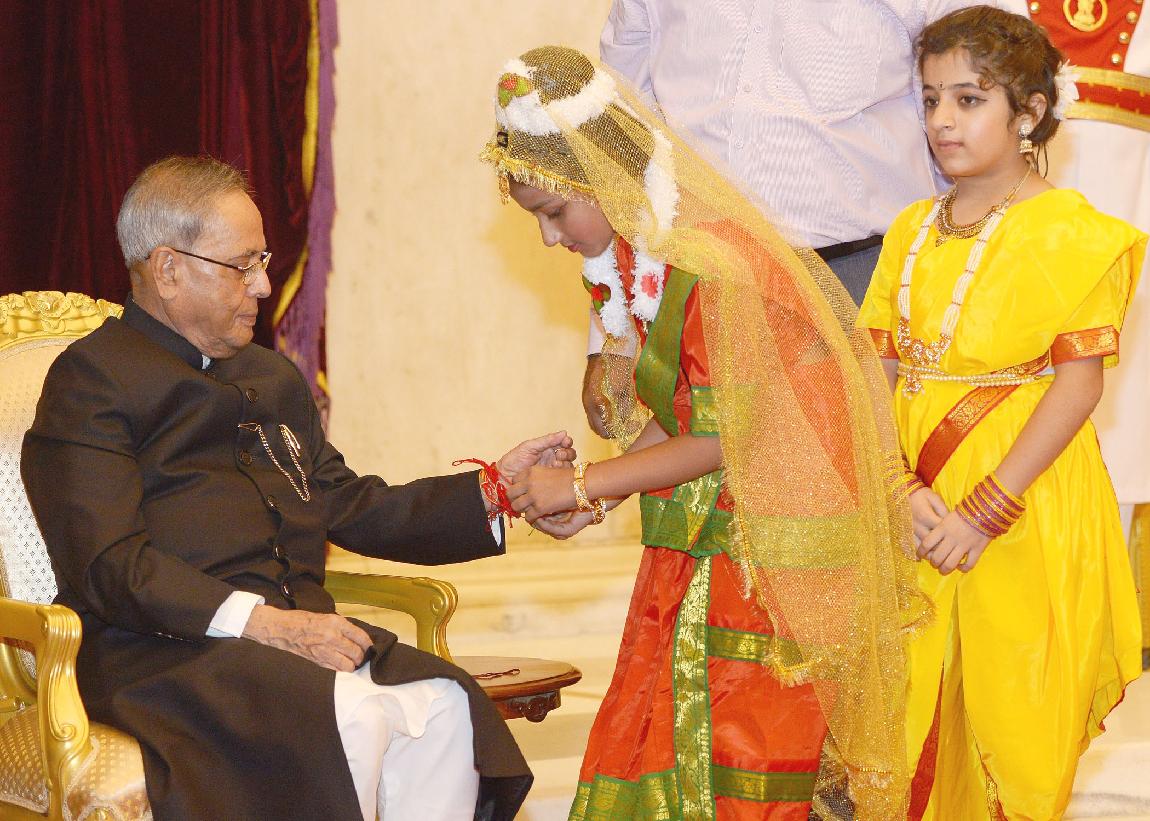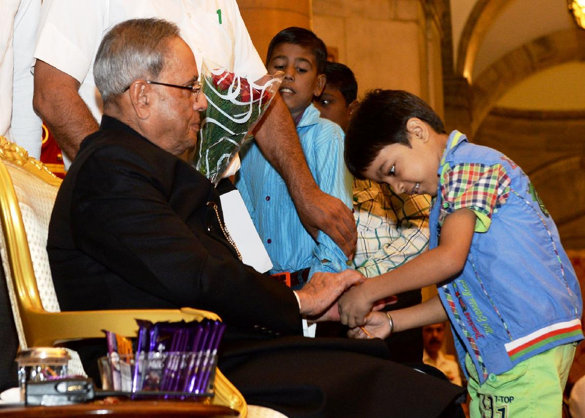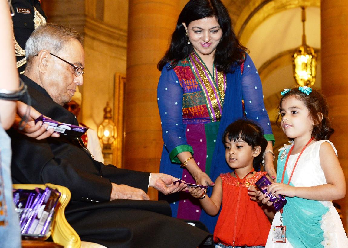 | Caption: | The President of India, Shri Pranab Mukherjee meeting with the Children/Students from Various Organizations/Schools on the Auspicious occasion of Raksha Bandhan at Rashtrapati Bhavan in New Delhi on August 10, 2014 |