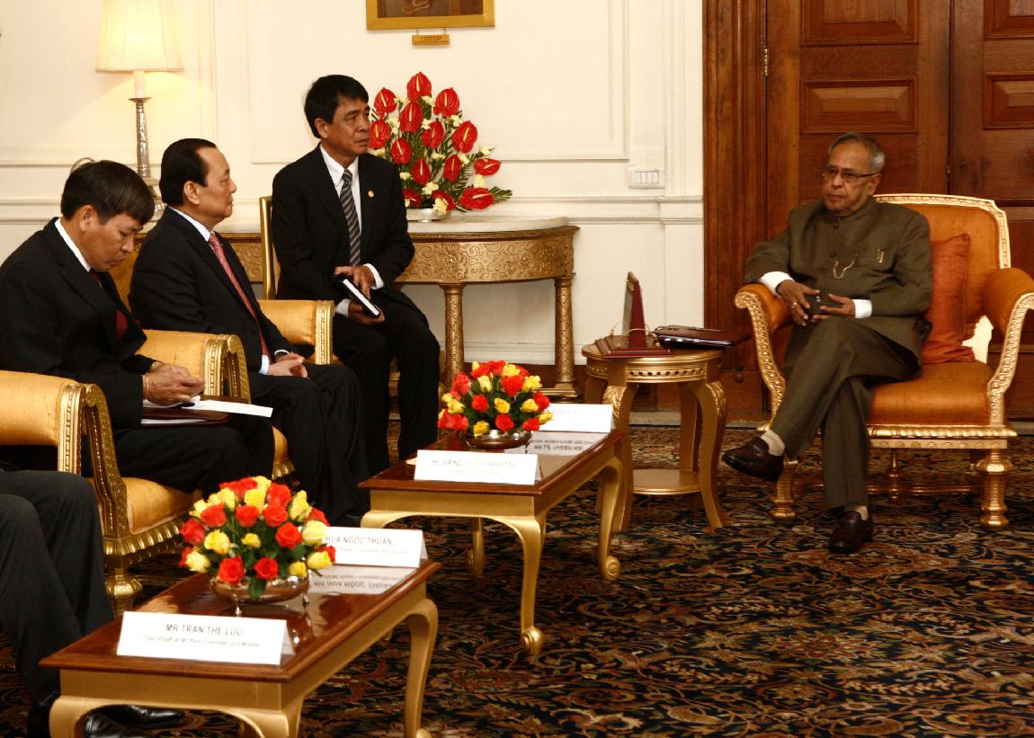 | Caption: | The Politburo Member of Vietnam Communist Party and Secretary of Ho Chi Min City Party Committee, HE Mr Le Thanh Hai calling on the President of India, Shri Pranab Mukherjee at Rashtrapati Bhavan in New Delhi on March 14, 2013 |