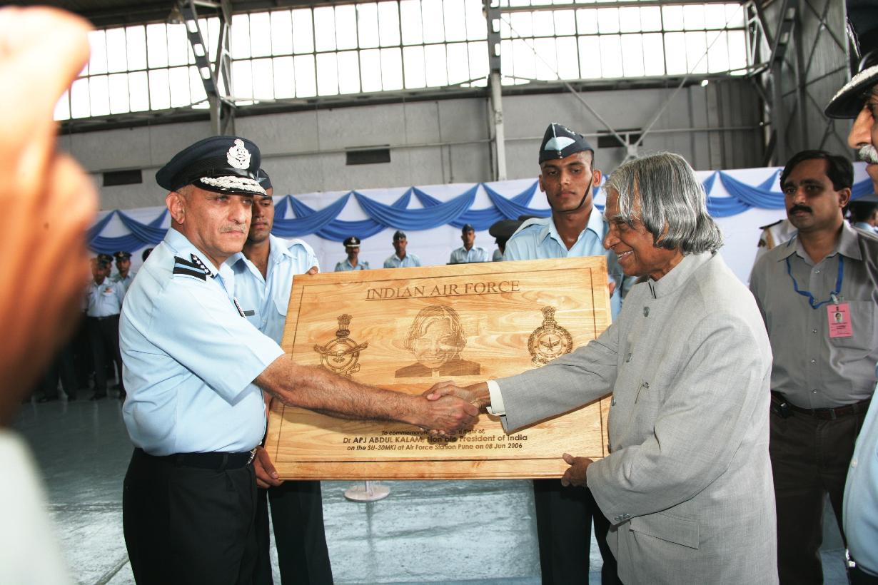 | Caption: | The President of India, Dr A P J Abdul Kalam at the Sukhoi-30 for a Sortie during his visit to AF Station at Pune in Maharashtra on June 08, 2006 |