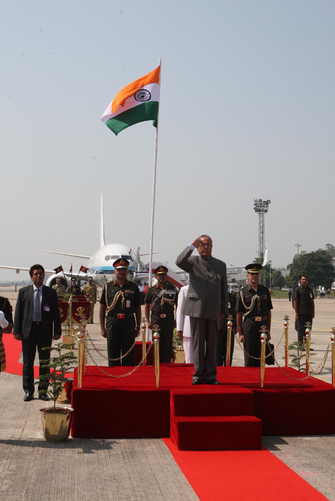 | Caption: | The President of India, Shri Pranab Mukherjee Inspecting Guard of Honour at Lucknow Airport on October 12, 2012 |