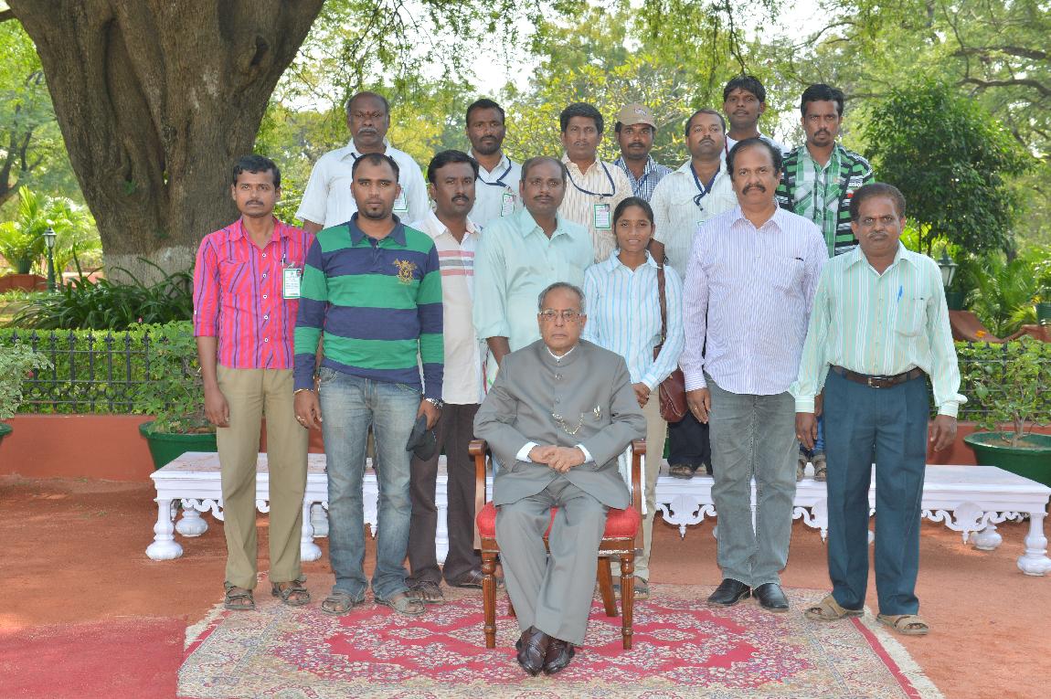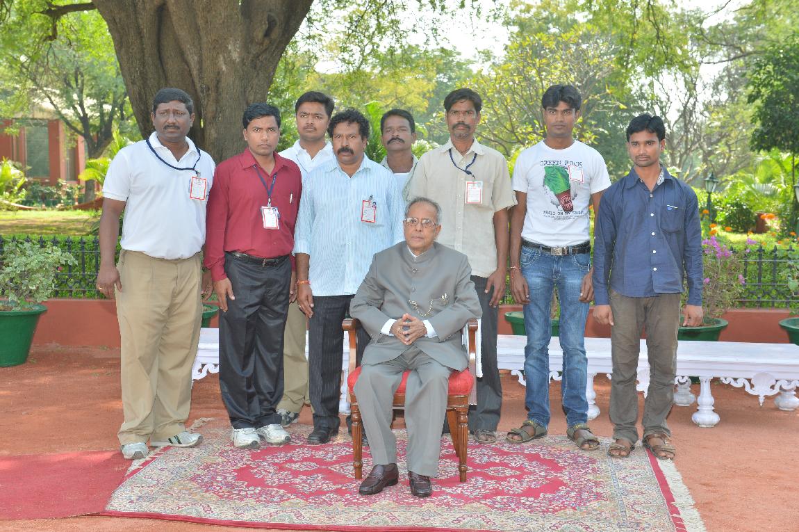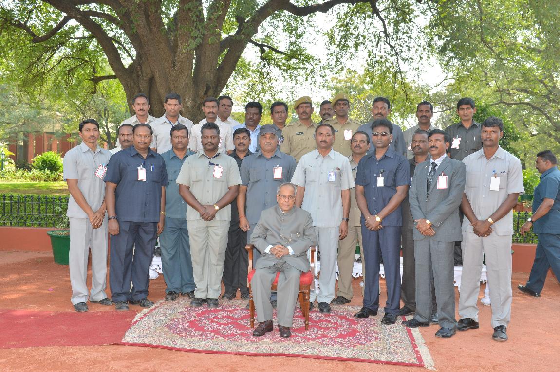 | Caption: | The President of India, Shri Pranab Mukherjee in Group Photographs of Staff Members of Rashtrapati Nilayam on 01 Jan 2013 |