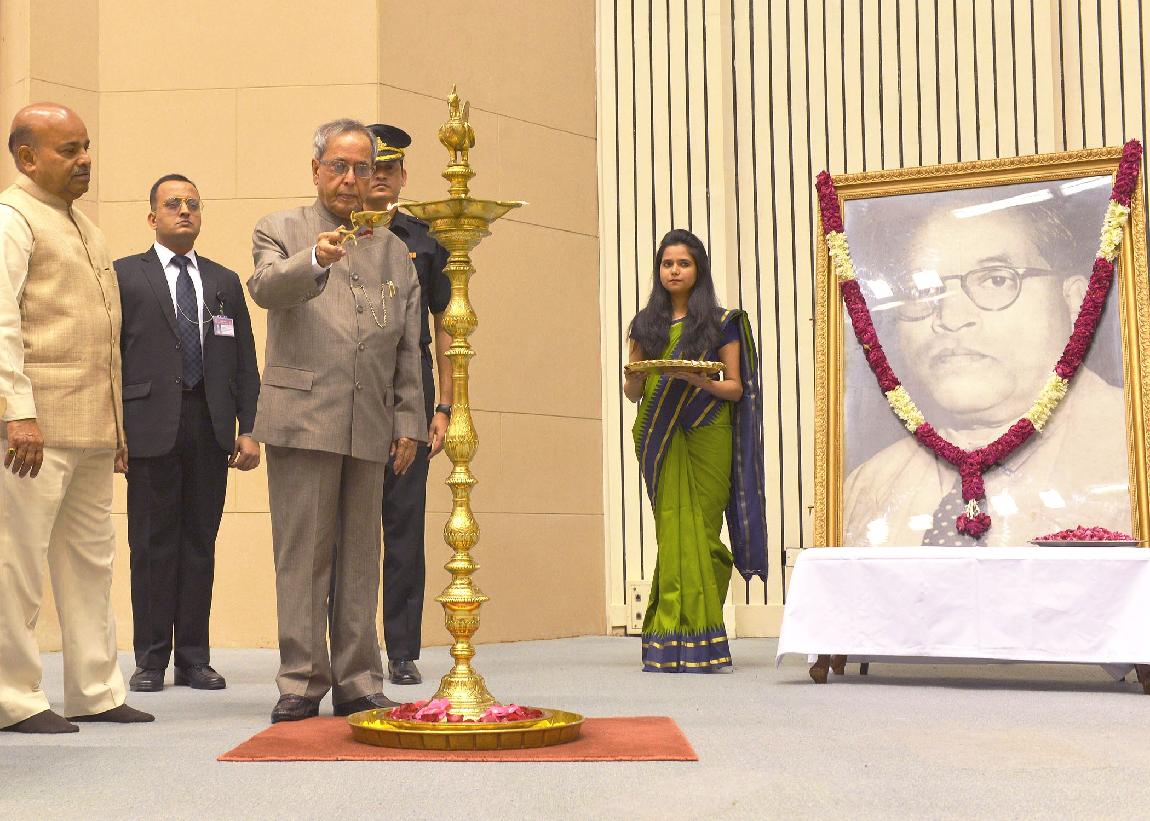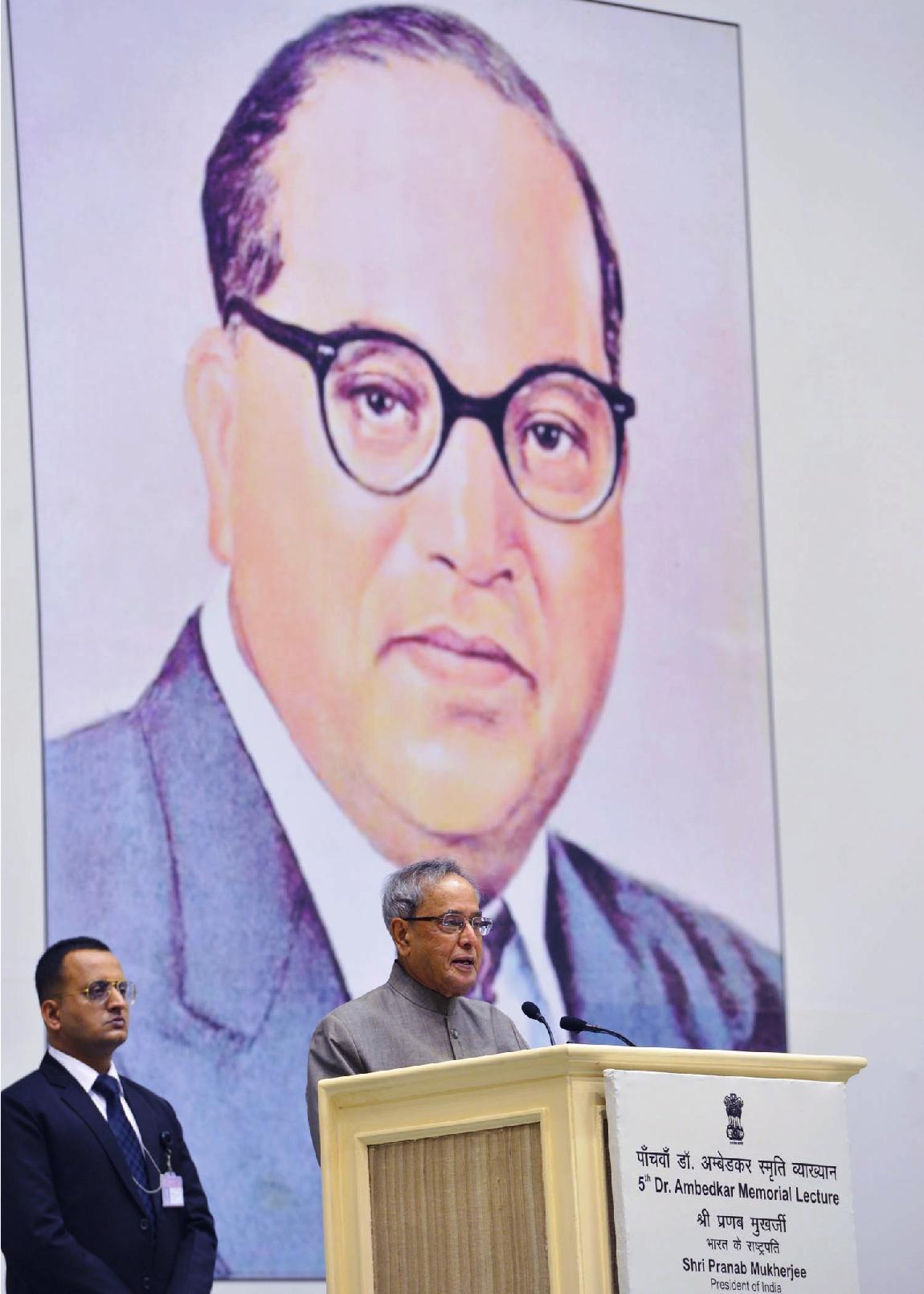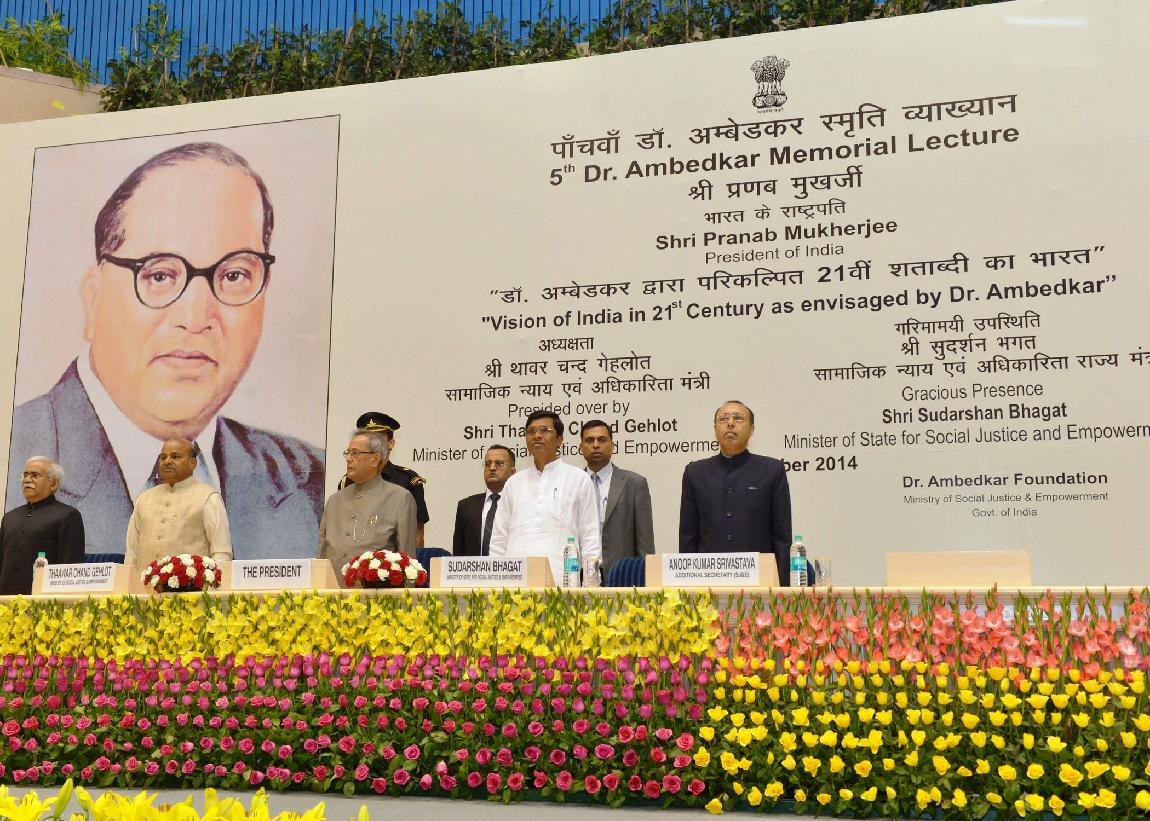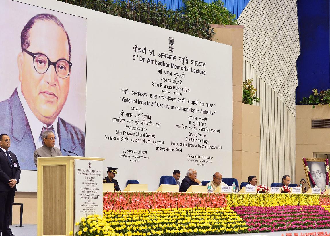 | Caption: | The President of India, Shri Pranab Mukherjee during a Function to deliverer the 5th Dr Ambedkar Memorial Lecture organized by the Dr Ambedkar Foundation at Vigyan Bhavan in New Delhi on Sep 04, 2014 |