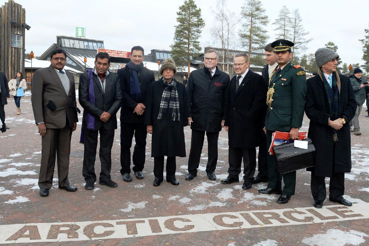 | Caption: | The President of India, Shri Pranab Mukherjee crossing the Arctic Circle during his visit to Arctic Circle and Santa Claus Village at Helsinki in Finland on Oct 15, 2014 |