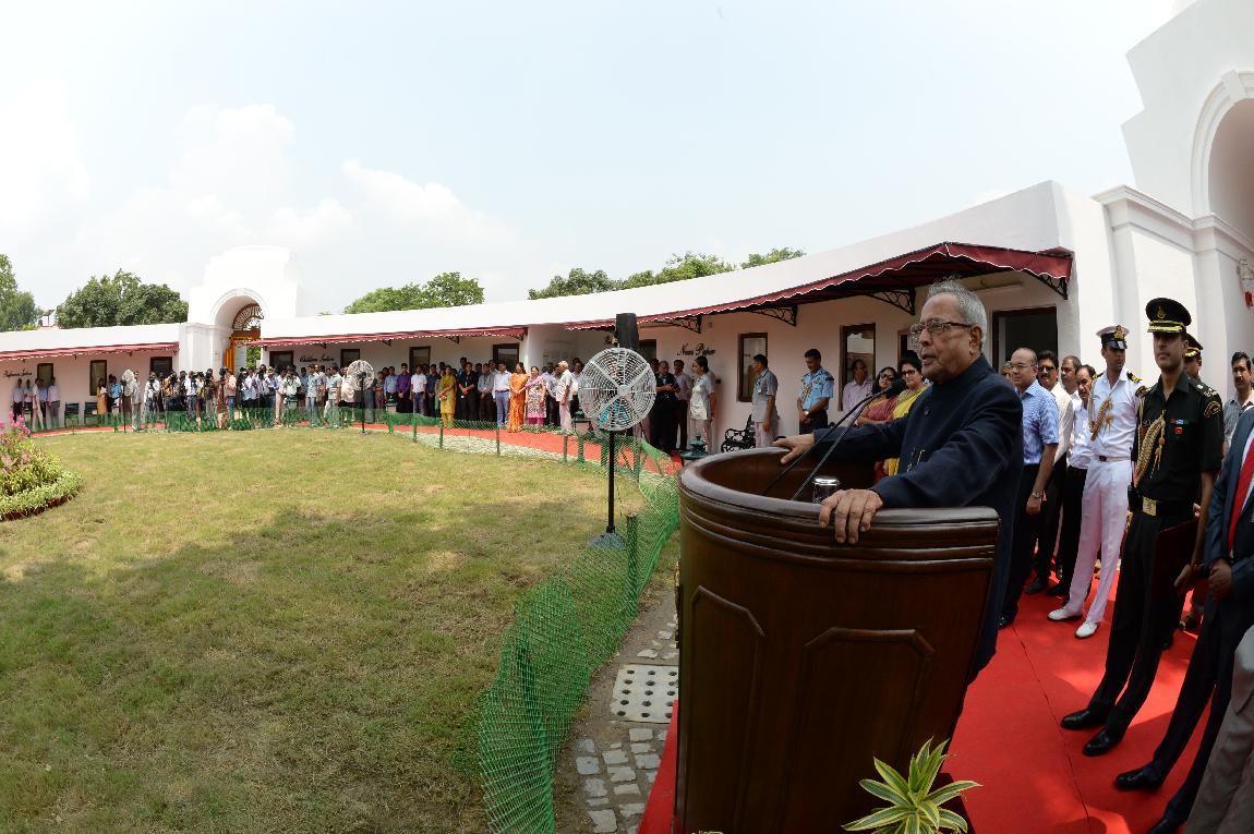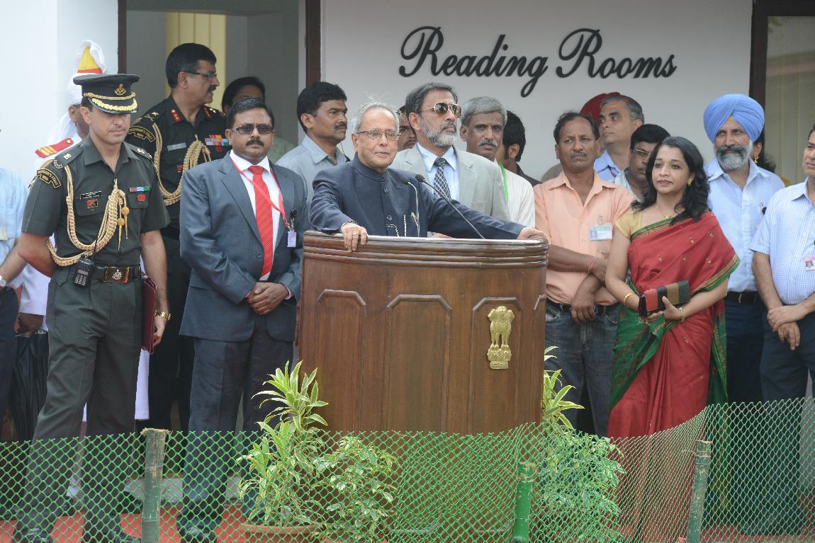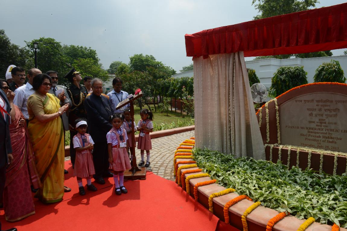 | Caption: | The President of India, Shri Pranab Mukherjee Inaugurating the Pranab Mukherjee Public Library at Schedule-B President Estate on July 25, 2013 |