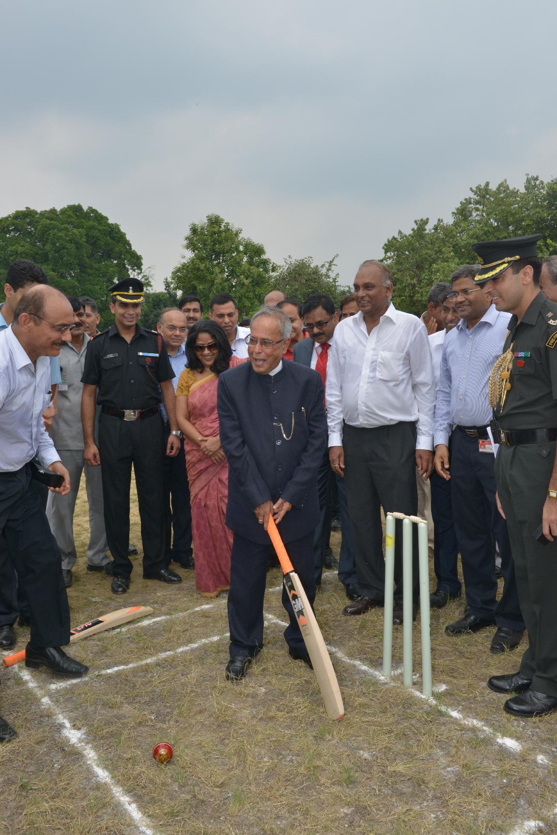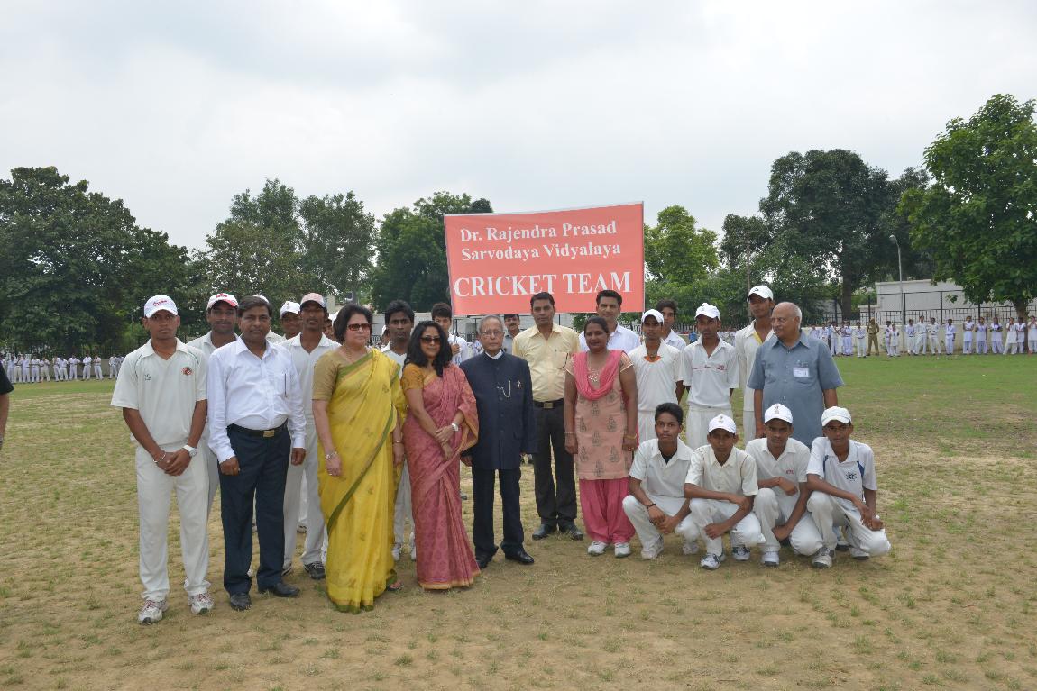 | Caption: | The President of India, Shri Pranab Mukherjee Inaugurating the Cricket Ground Dr Rajendra Prasad Sarvodaya Vidyalaya at President Estate on July 25, 2013 |