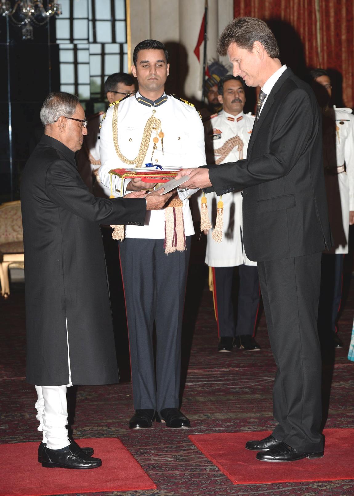 | Caption: | The Ambassador-Designateof Iceland, His Excellency Mr Thorir Ibsen presenting his credentials to the President of India, Shri Pranab Mukherjee at Rashtrapati Bhavan in New Delhi on Sep 25, 2014 |