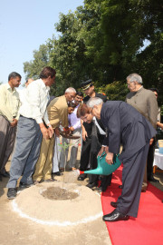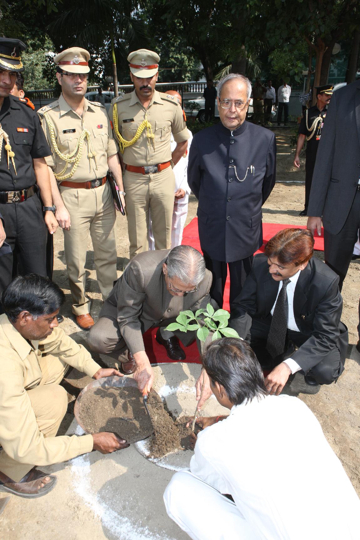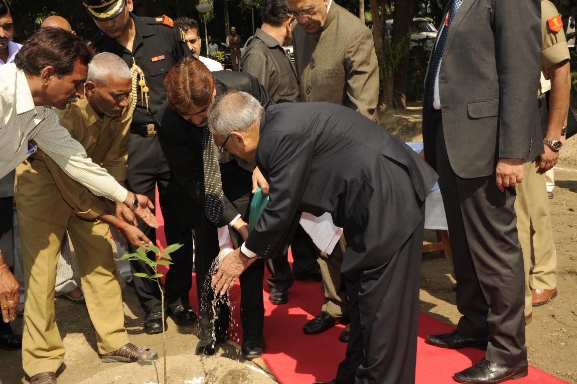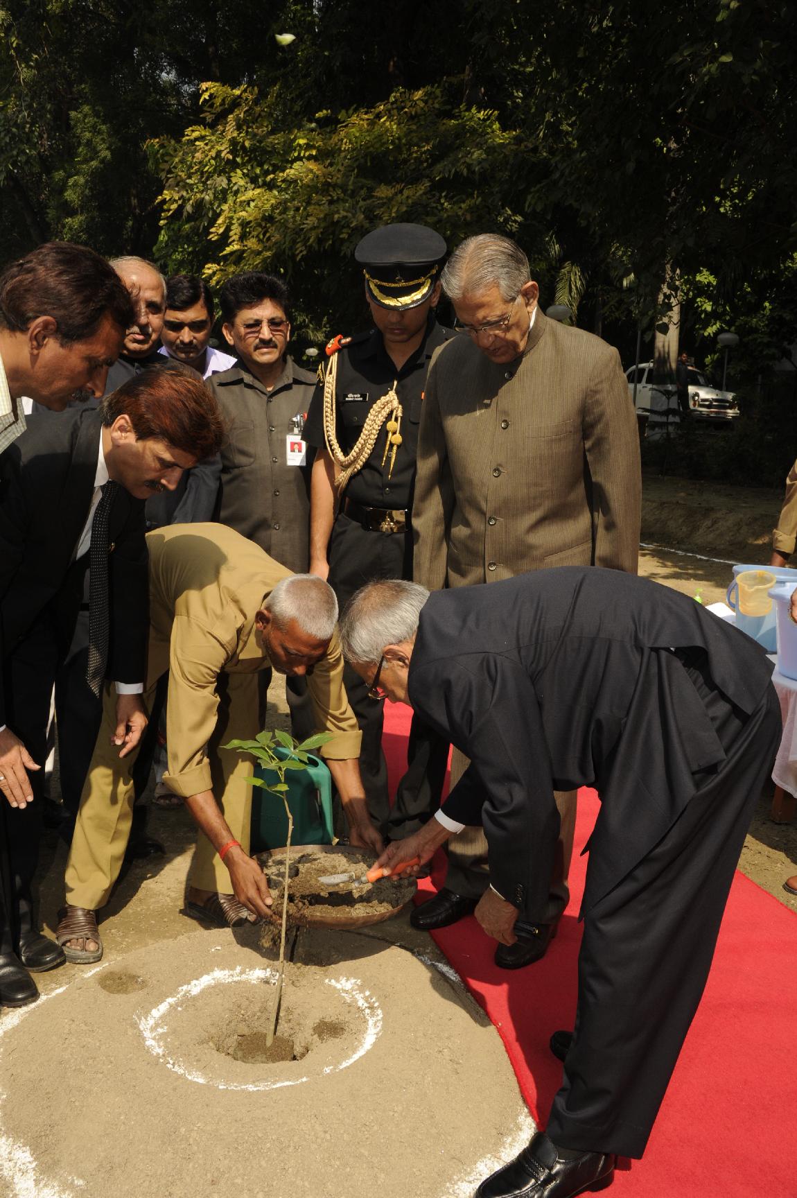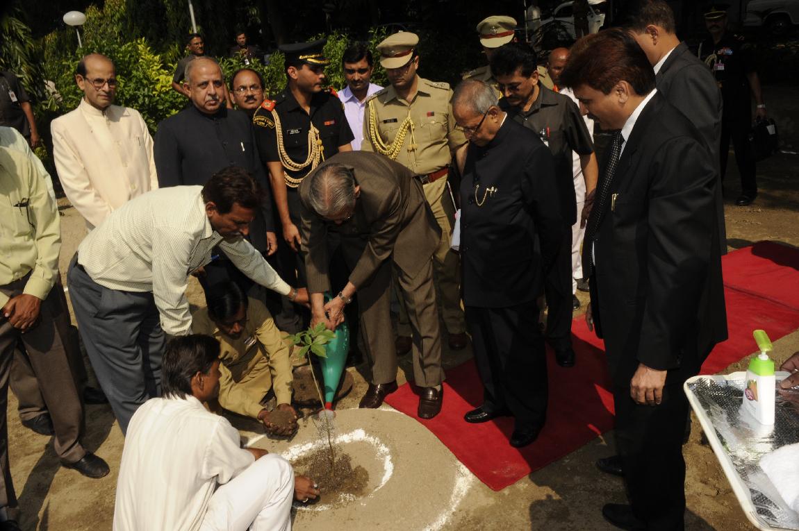 | Caption: | The President of India, Shri Pranab Mukherjee Planting of Sapling at Governor House on October 13, 2012 |