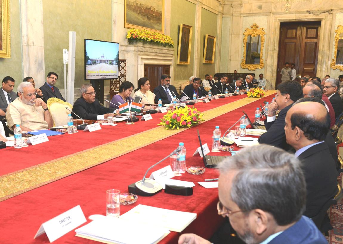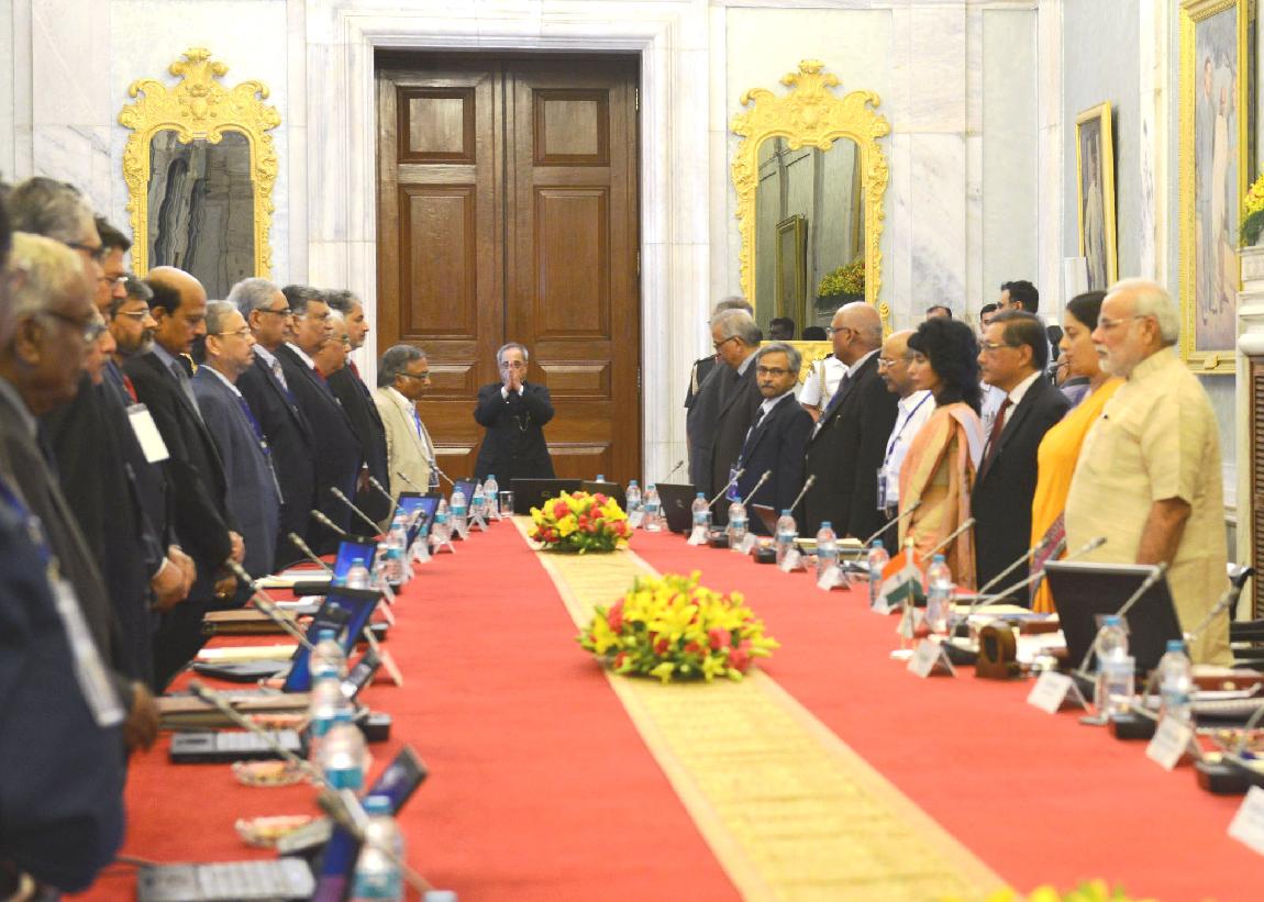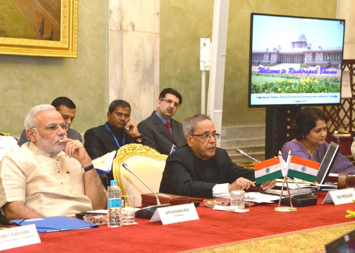 | Caption: | The President of India, Shri Pranab Mukherjee at the Conference of Chairmen, Board of Governors and Directors of Indian Institutes of Technology (IITs) at Rashtrapati Bhavan in New Delhi on August 22, 2014 |