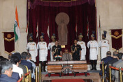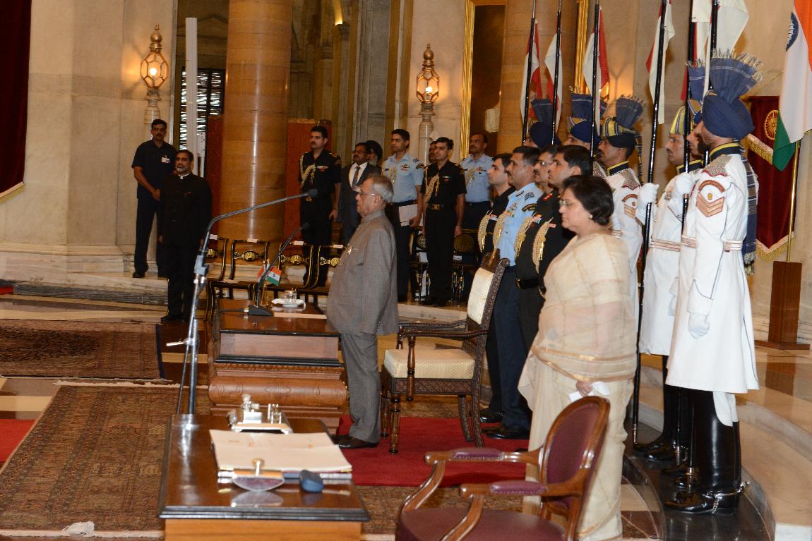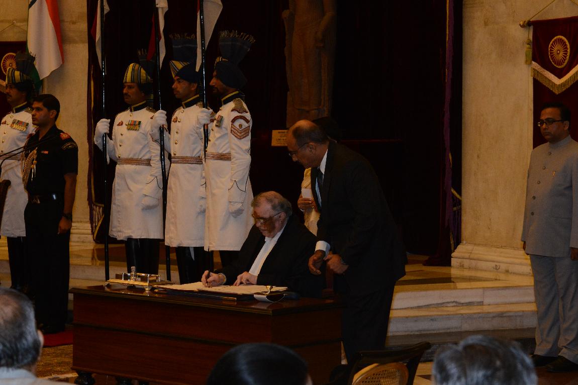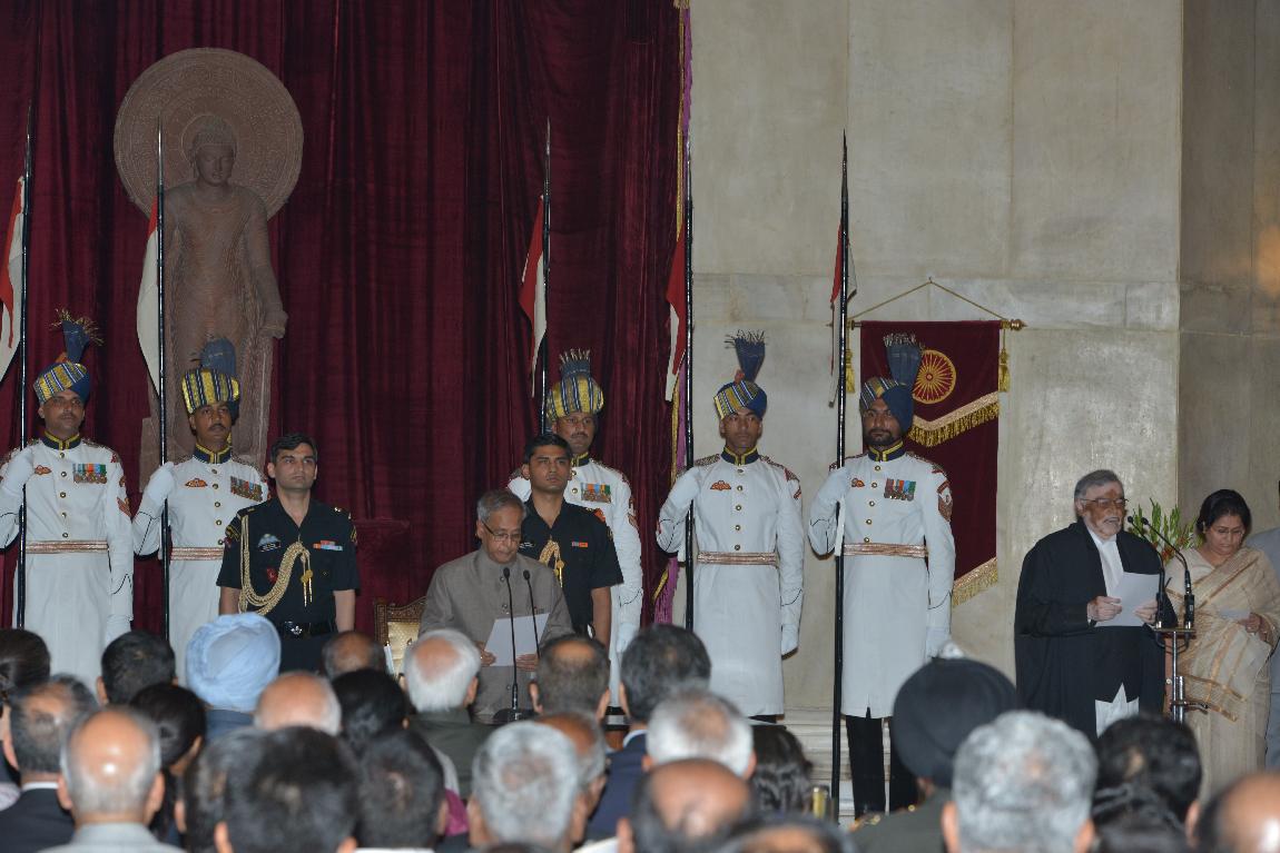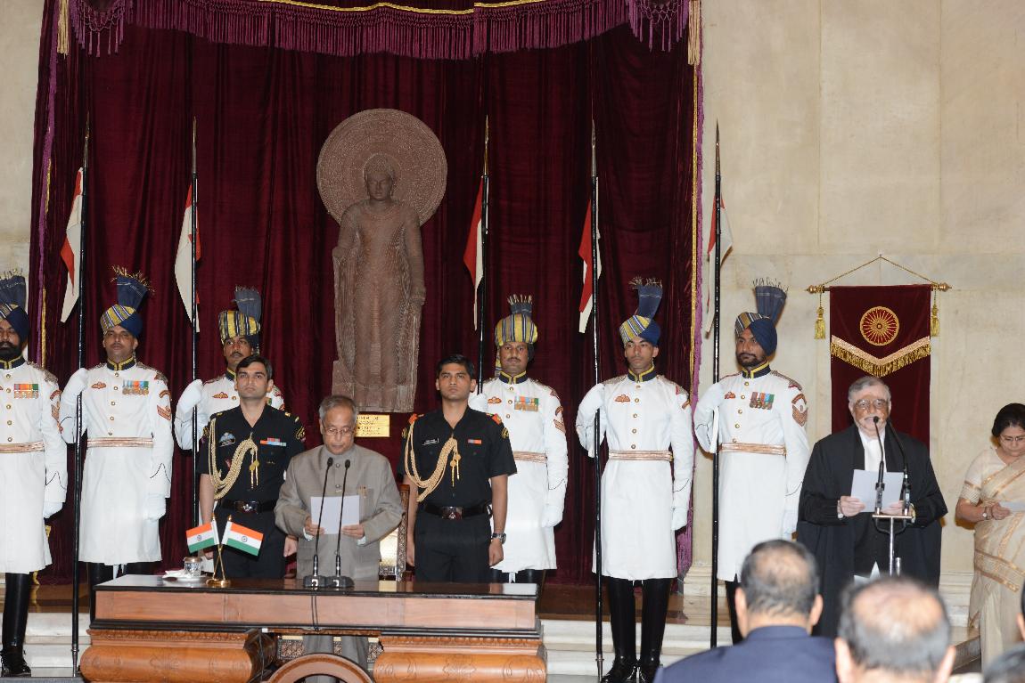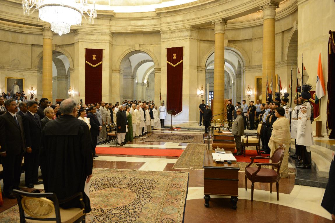 | Caption: | The President of India, Shri Pranab Mukherjee at Swearing-in-Ceremony of The Chief Justice of India-Designate Shri Justice P Sathasivam on 19 July, 2013 |
