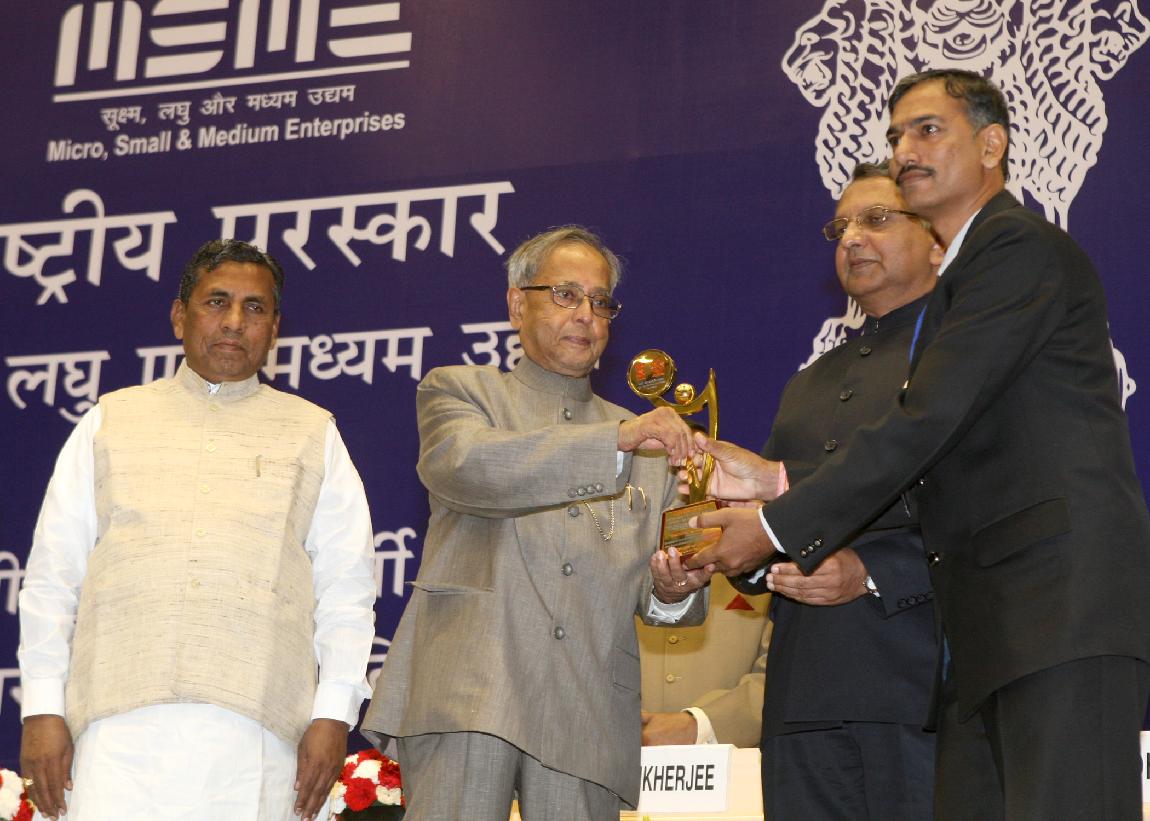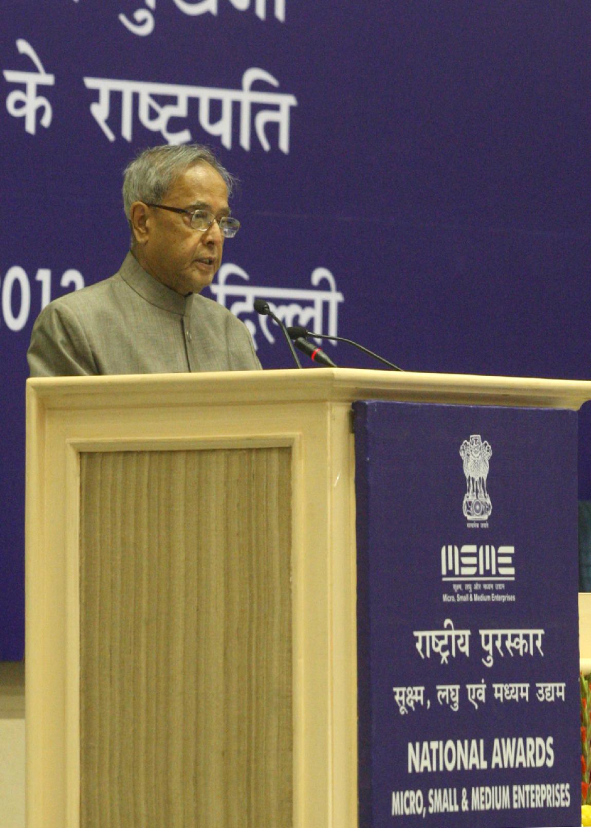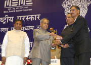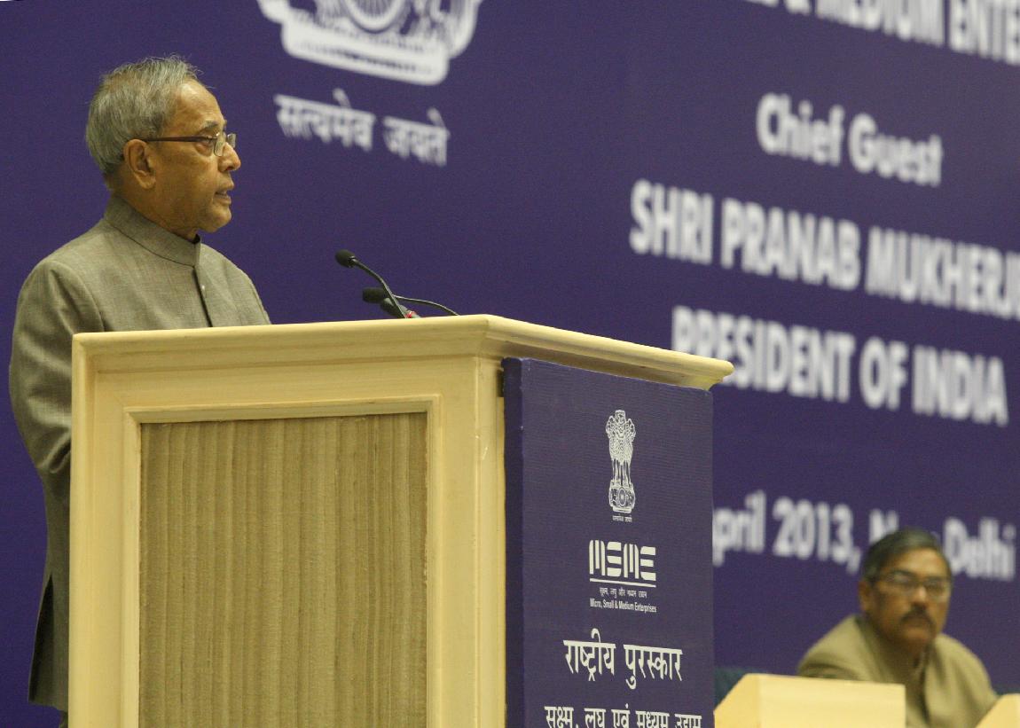 | Caption: | The President of India, Shri Pranab Mukherjee Presenting the National Awards for Outstanding Entrepreneurship,Product Quality and R&D to the Entrepreneurs from Micro Small & Medium Enterprises, Khadi & Coir Sectors at Vigyan Bhavan on April 03, 2013 |