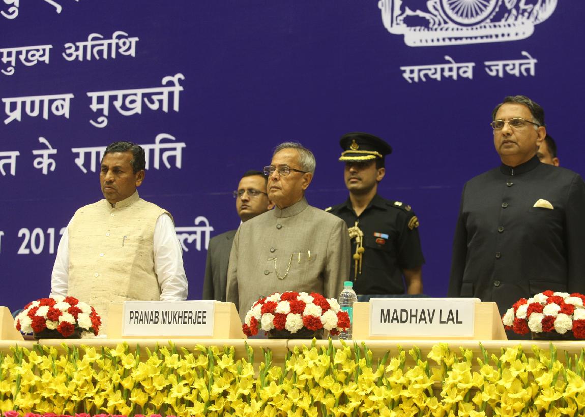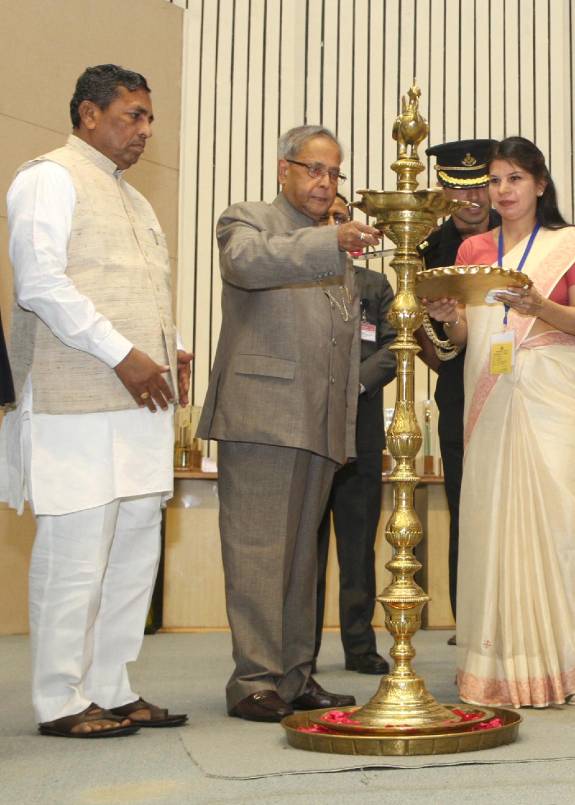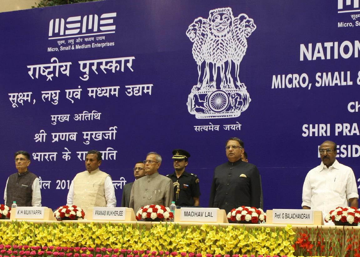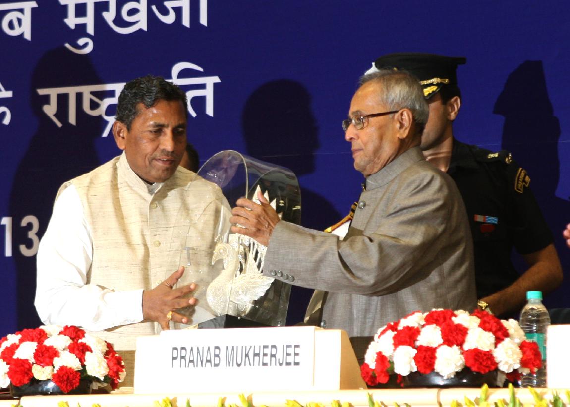 | Caption: | The President of India, Shri Pranab Mukherjee Presenting the National Awards for Outstanding Entrepreneurship,Product Quality and R&D to the Entrepreneurs from Micro Small & Medium Enterprises, Khadi & Coir Sectors at Vigyan Bhavan on April 03, 2013 |