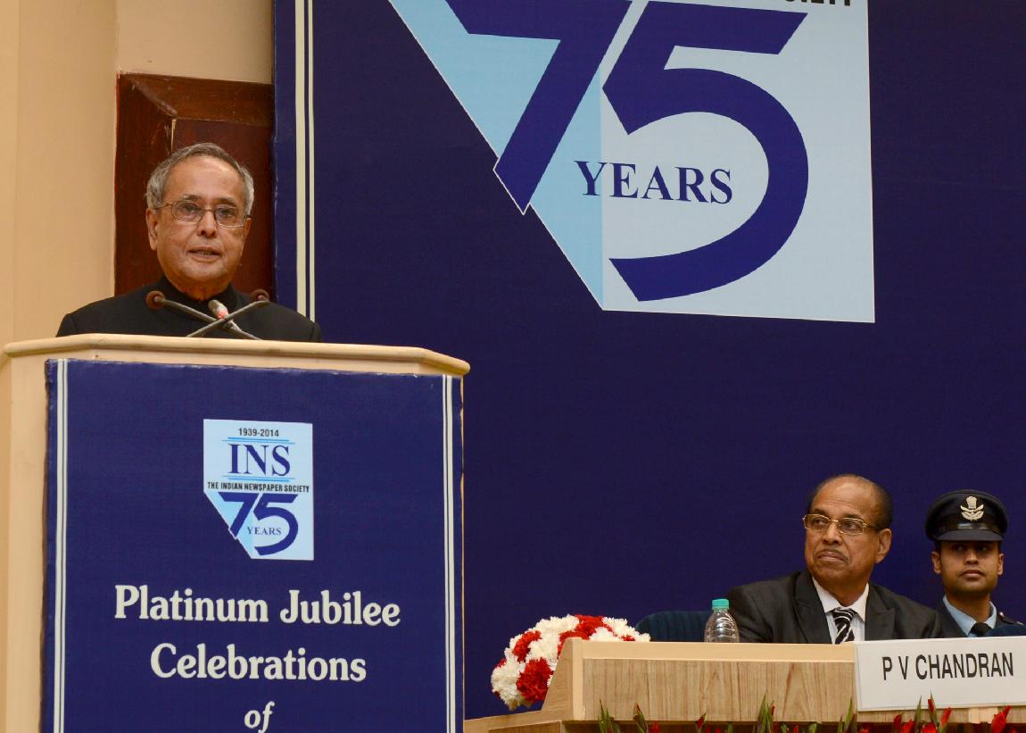 | Caption: | The President of India, Shri Pranab Mukherjee inaugurating the Platinum Jubilee Celebrations of the Indian Newspaper Society (INS) at Vigyan Bhavan in New Delhi on Feb 27, 2014 |