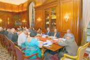 | Caption: | The President of India, Shri Pranab Mukherjee with the Board of The Governors of Nalanda University on 20 July, 2013 |
