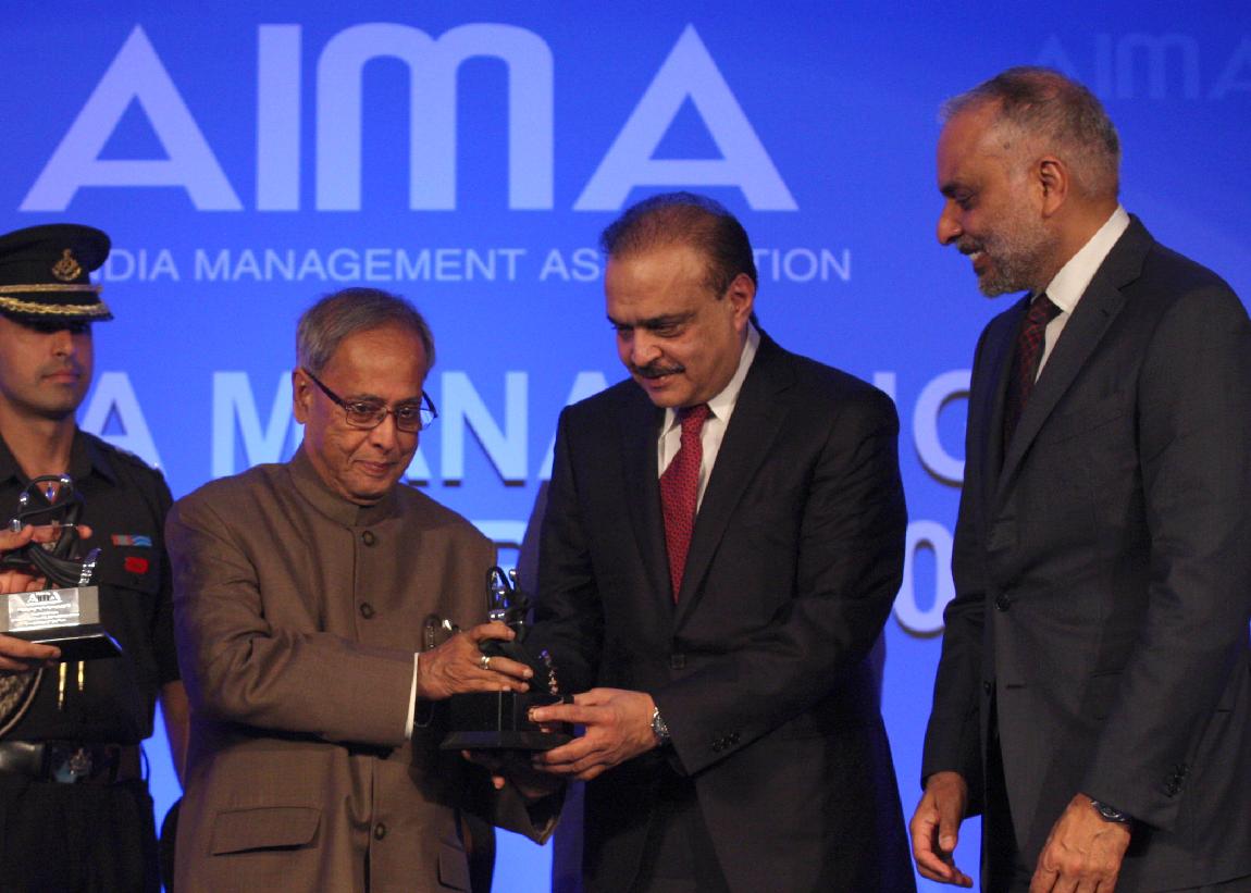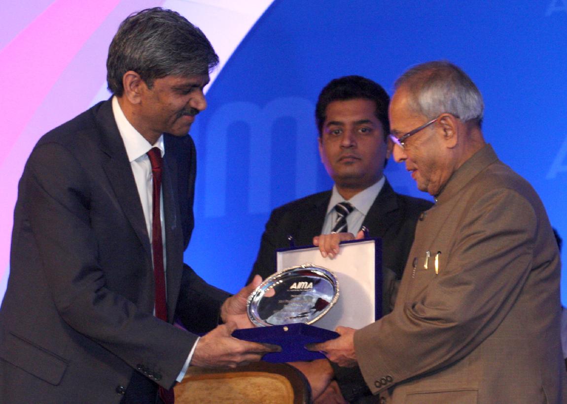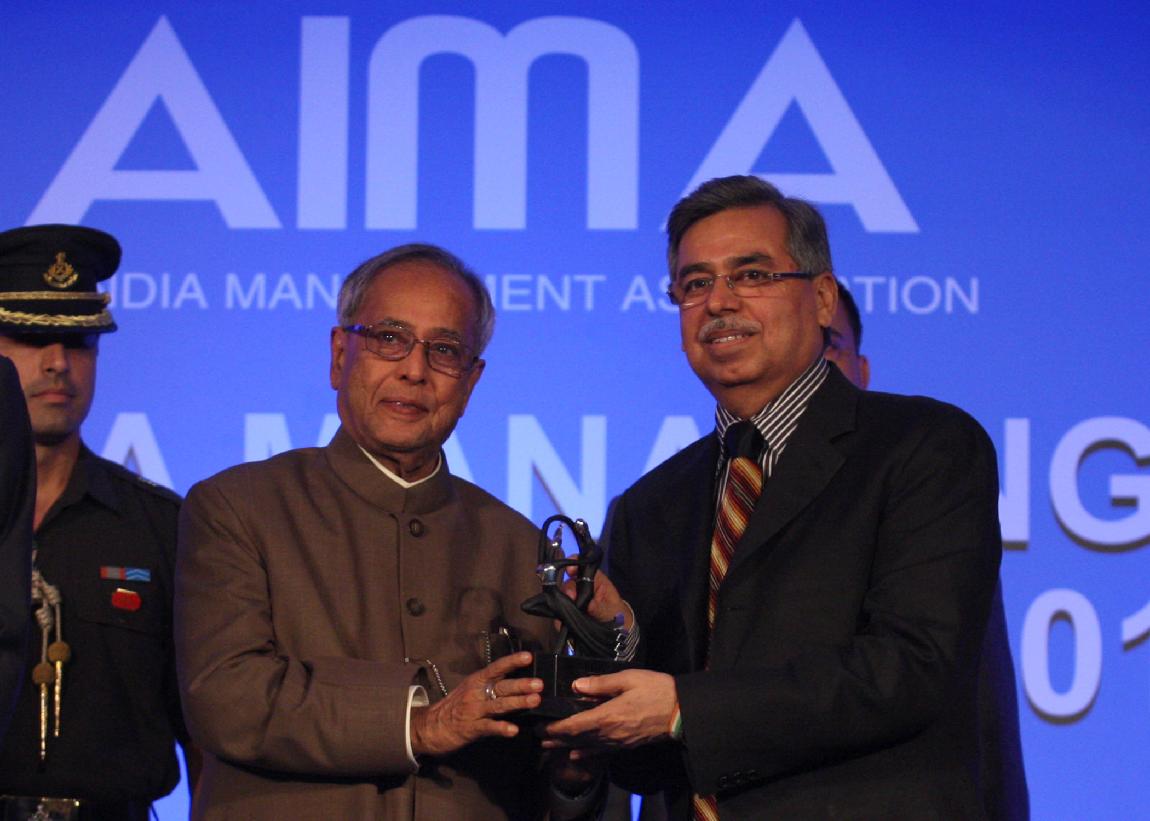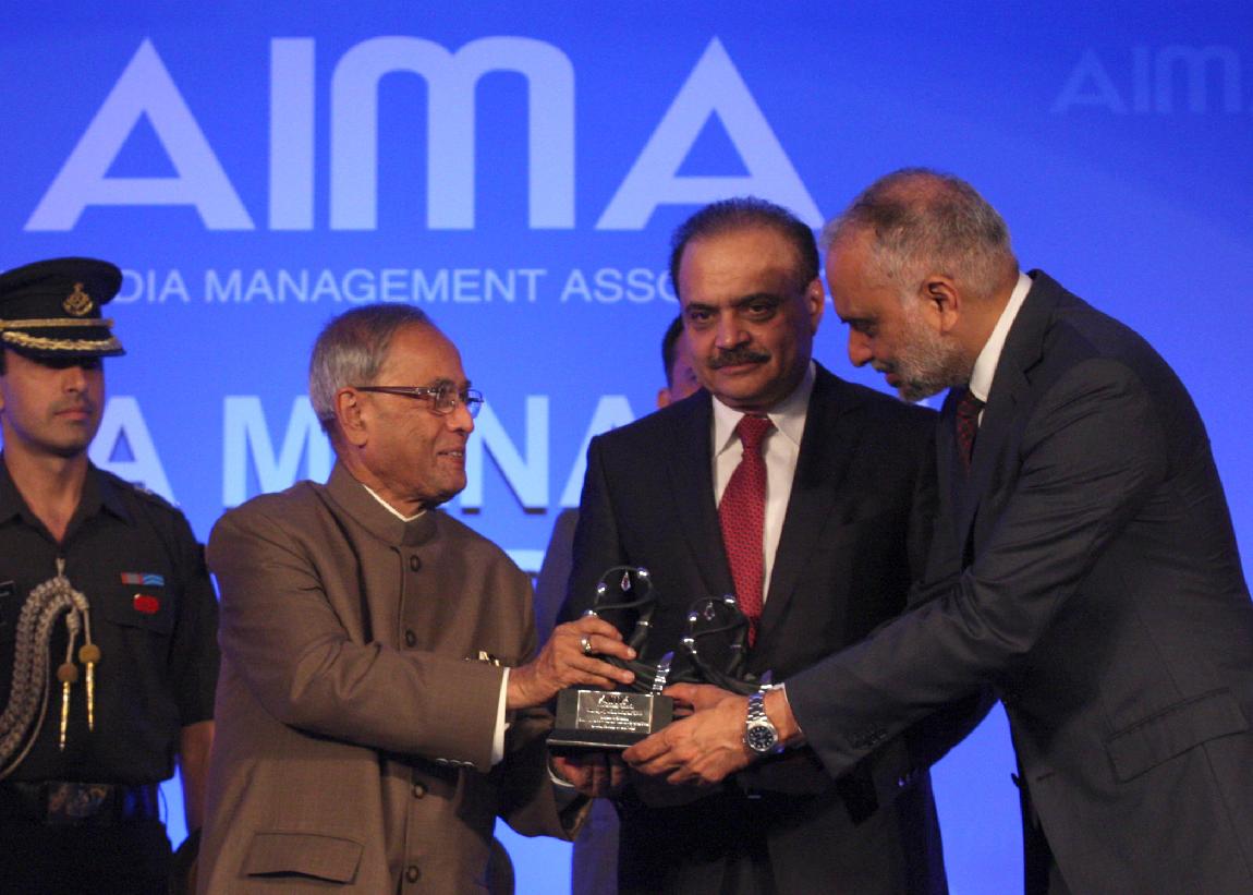 | Caption: | The President of India, Shri Pranab Mukherjee Presenting the All India Management Association (AIMA) Managing India Awards 2013 at Hotel Taj Palace, Delhi on April 11, 2013 |