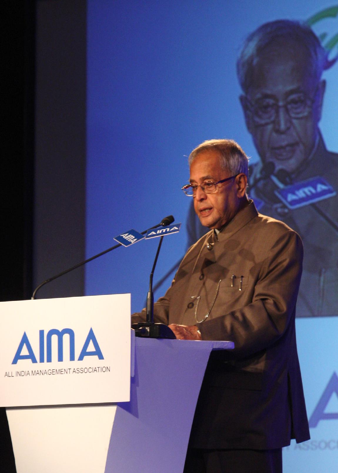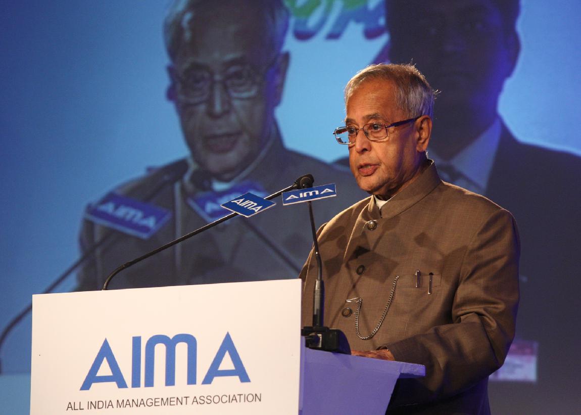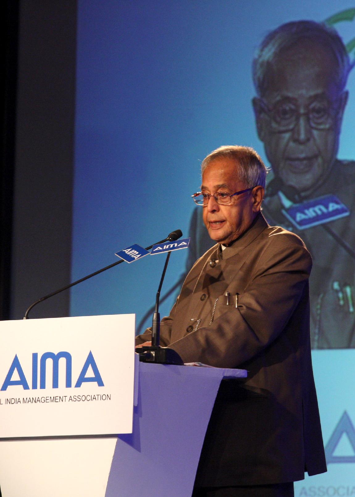| Caption: | The President of India, Shri Pranab Mukherjee Presenting the All India Management Association (AIMA) Managing India Awards 2013 at Hotel Taj Palace, Delhi on April 11, 2013 |