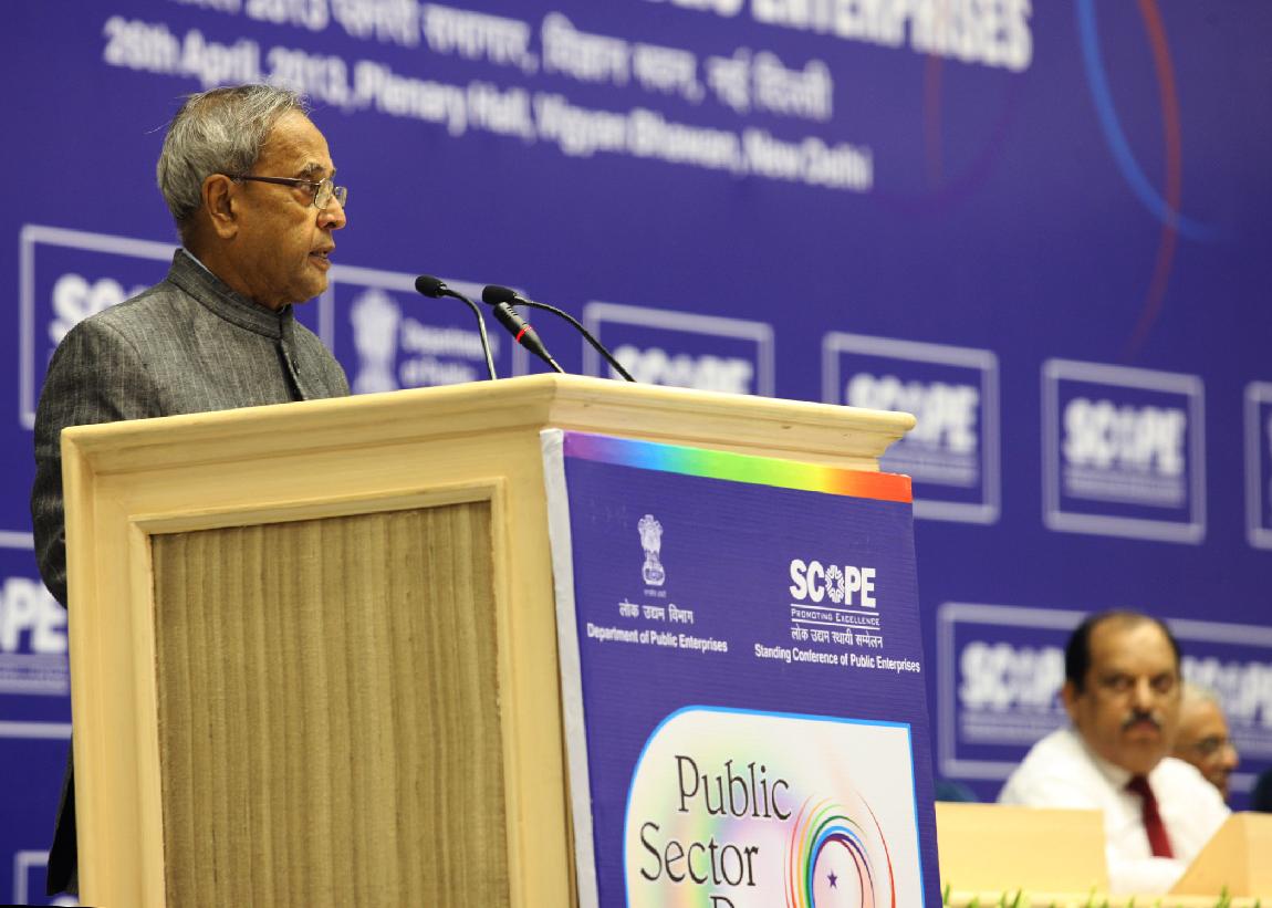 | Caption: | The President of India, Shri Pranab Mukherjee Attending Public Sector Day Function SCOPE on April 26, 2013 |