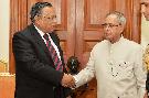 | Caption: | The Foreign Minister of People's Republic of Bangladesh, HE Mr Abul Hassan Mahmood Ali calling on the President of India, Shri Pranab Mukherjee at Rashtrapati Bhavan in New Delhi on Sep 19, 2014 |