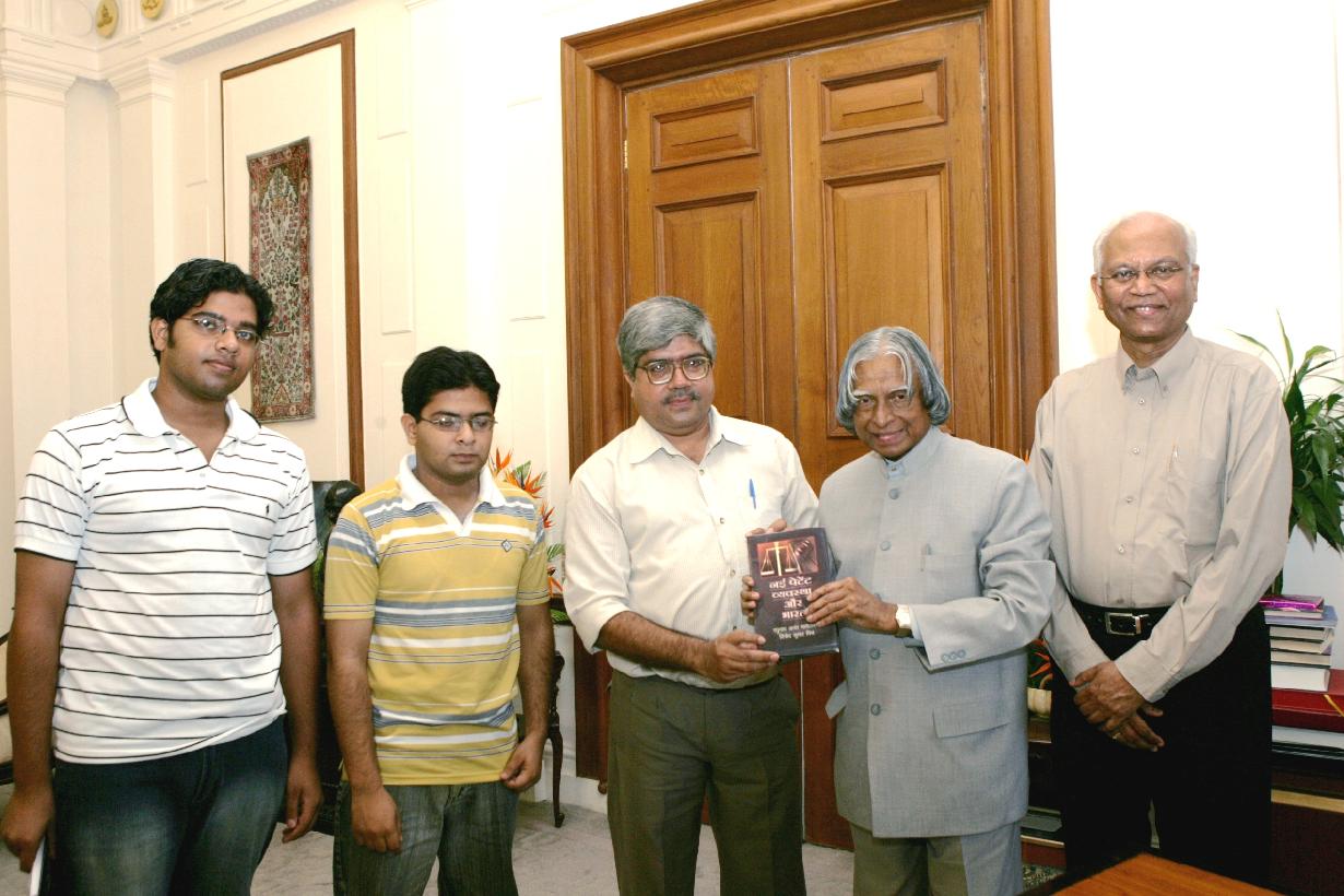 | Caption: | The President of India, Dr A P J Abdul Kalam with Dr R A Mashelkar, DG, CSIR alongwith Dr Vinod Kumar Mishra and Shri Mahesh Bhardwaj to present the Book "Nai Patent Vyavastha Aur Bharat" at Rashtrapati Bhavan in New Delhi on July 10, 2006 |