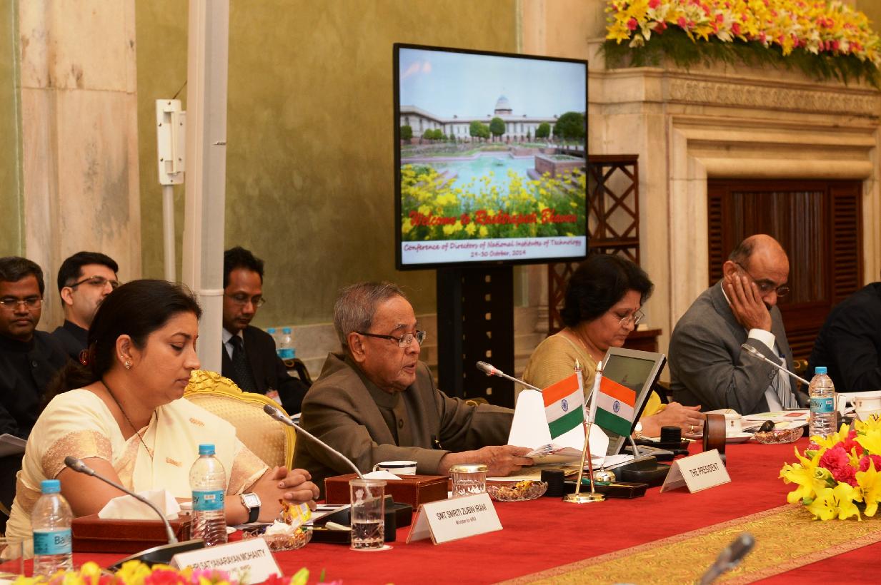 | Caption: | The President of India, Shri Pranab Mukherjee during the Conference of the Directors of National Institutes of Technology on Day II at Rashtrapati Bhavan in New Delhi on Oct 30, 2014 |