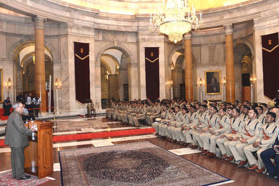 | Caption: | The President of India, Shri Pranab Mukherjee meeting with the Officers Trainees of 66 RR (2013 Batch) of Indian Police Service from Sardar Vallabhbhai Patel National Police Academy, Hyderabad at Rashtrapati Bhavan in New Delhi on Sep 29, 2014 |