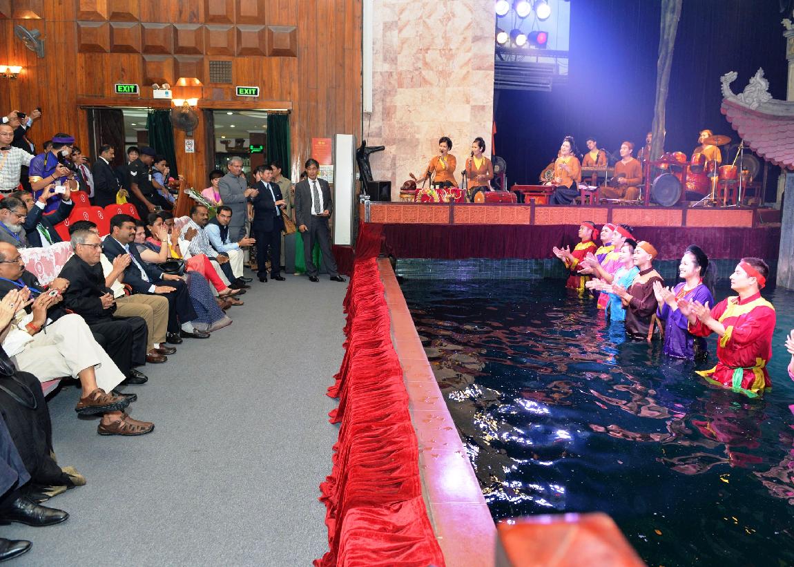 | Caption: | The President of India, Shri Pranab Mukherjee witnessing the Water Puppet Show during his visit to the Socialist Republic of Vietnam at Thang Long Water Puppet Theatre in Vietnam on Sep 14, 2014 |