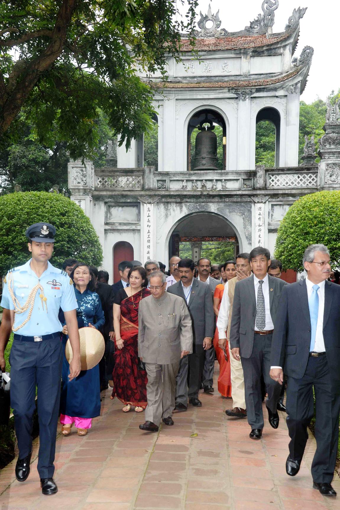| Caption: | The President of India, Shri Pranab Mukherjee visiting the Temple of Literature in Vietnam on Sep 16, 2014 |