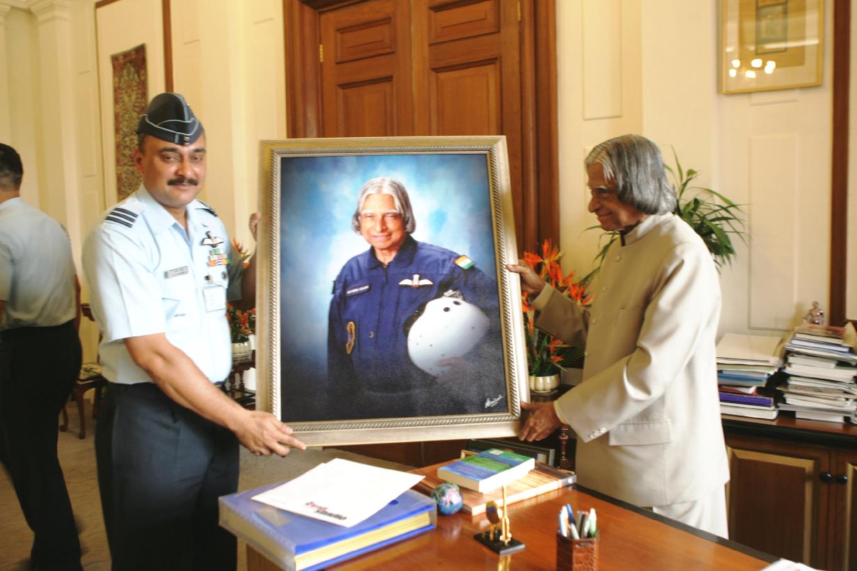| Caption: | The President of India, Dr A P J Abdul Kalam Wg Cdr Ajay Rathore, Commanding Officer, 20 Sqn AF, Pune at Rashtrapati Bhavan in New Delhi on July 13, 2006 |