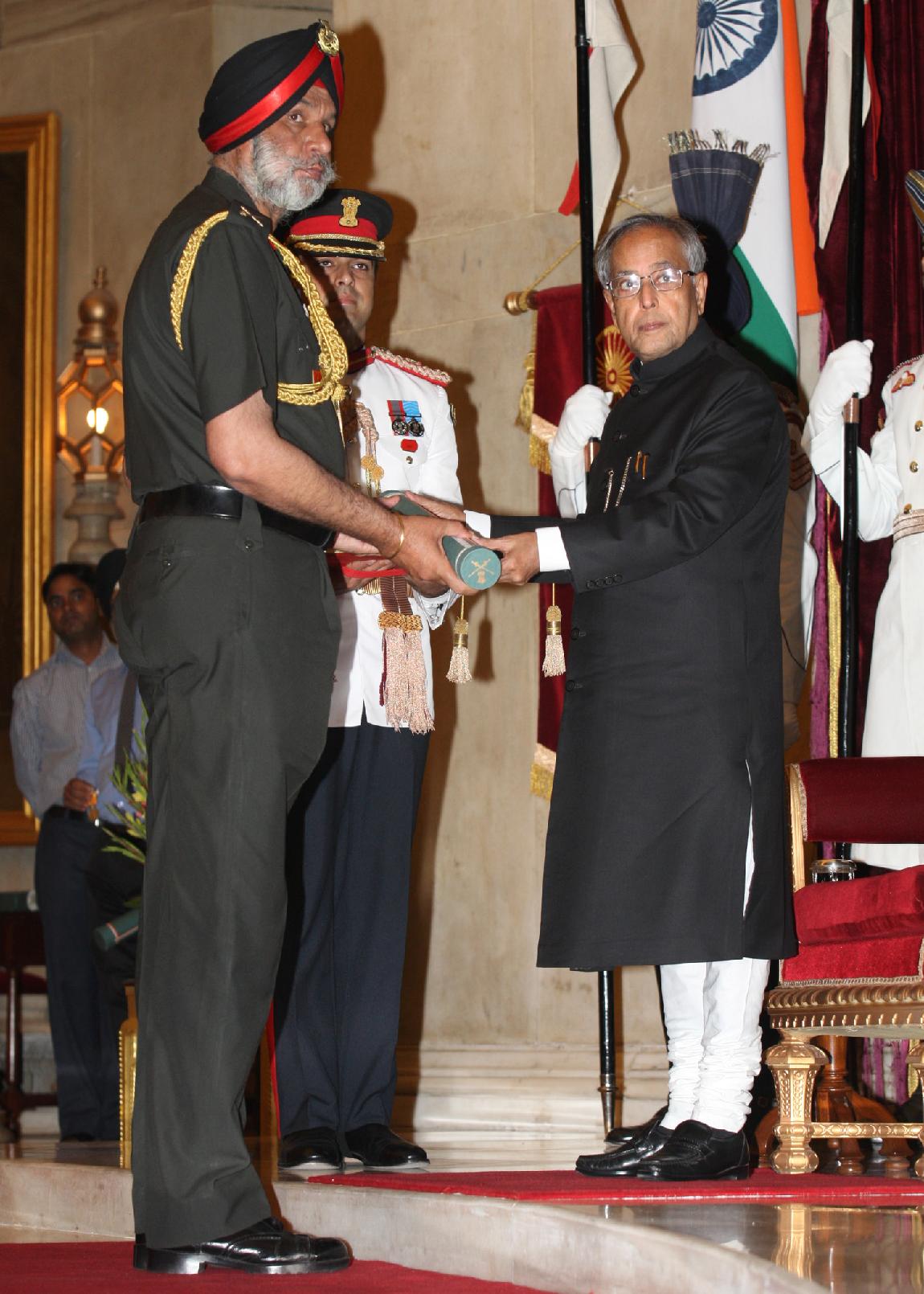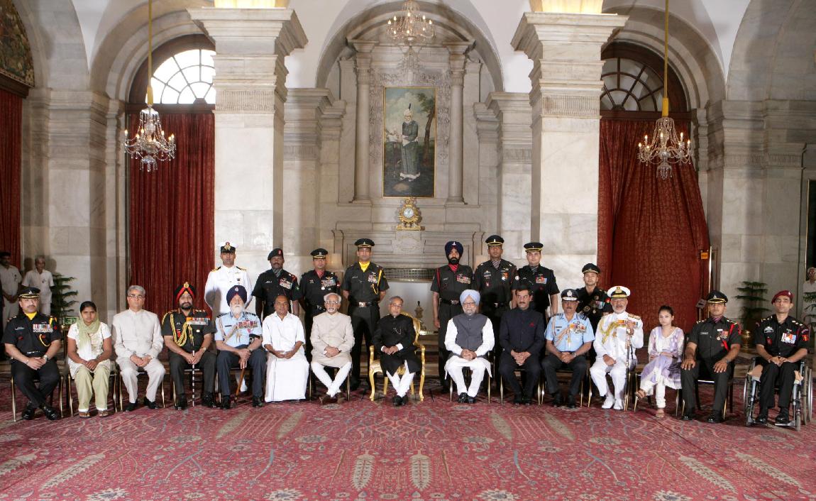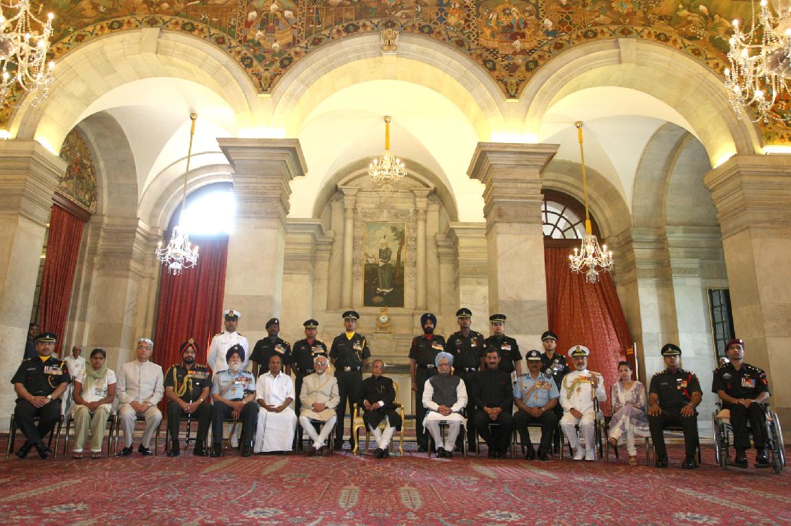 | Caption: | The President of India, Shri Pranab Mukherjee Presenting the Defence Awards at the Darbar Hall of Rashtrapati Bhavan in Delhi on April 27, 2013 |