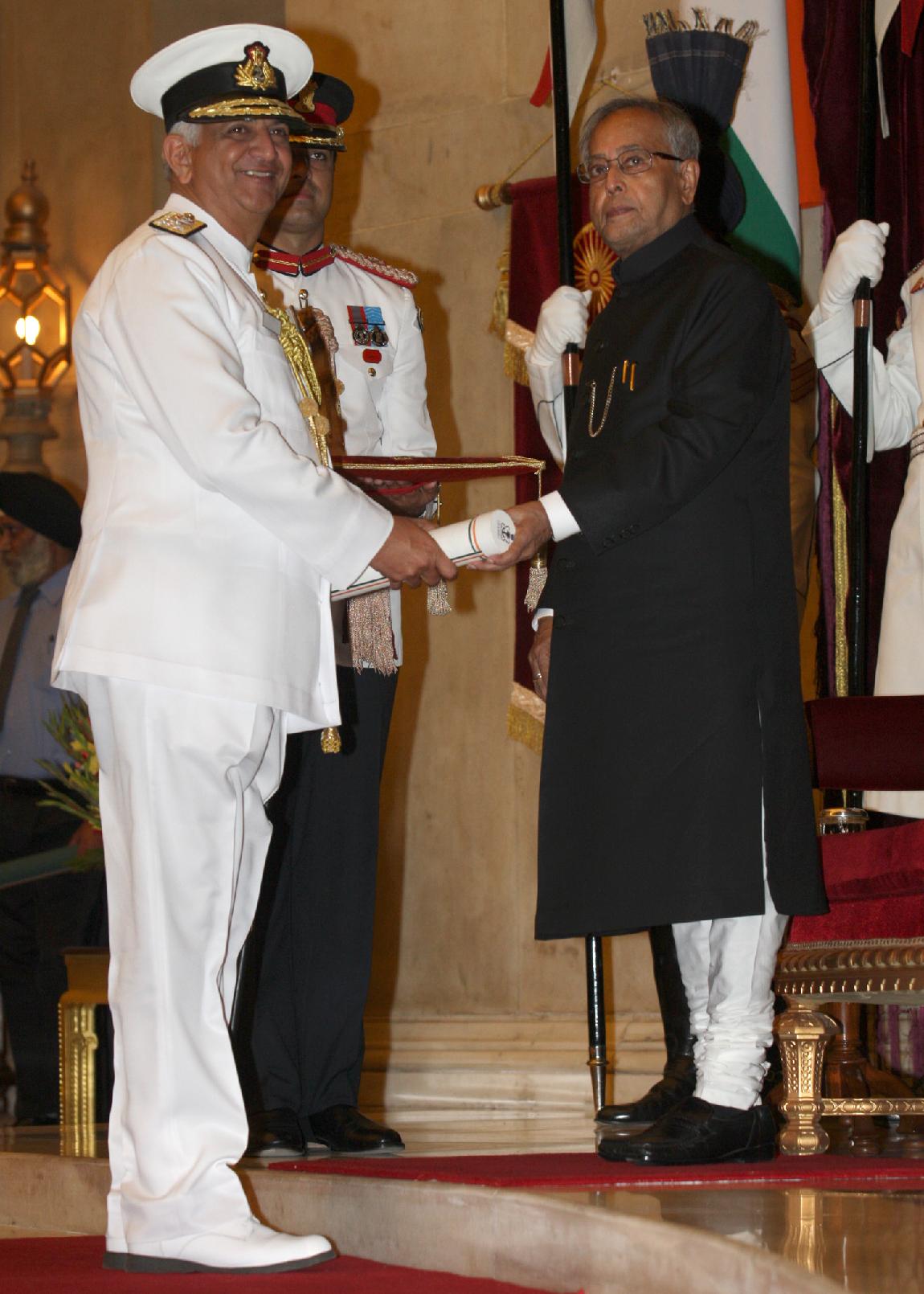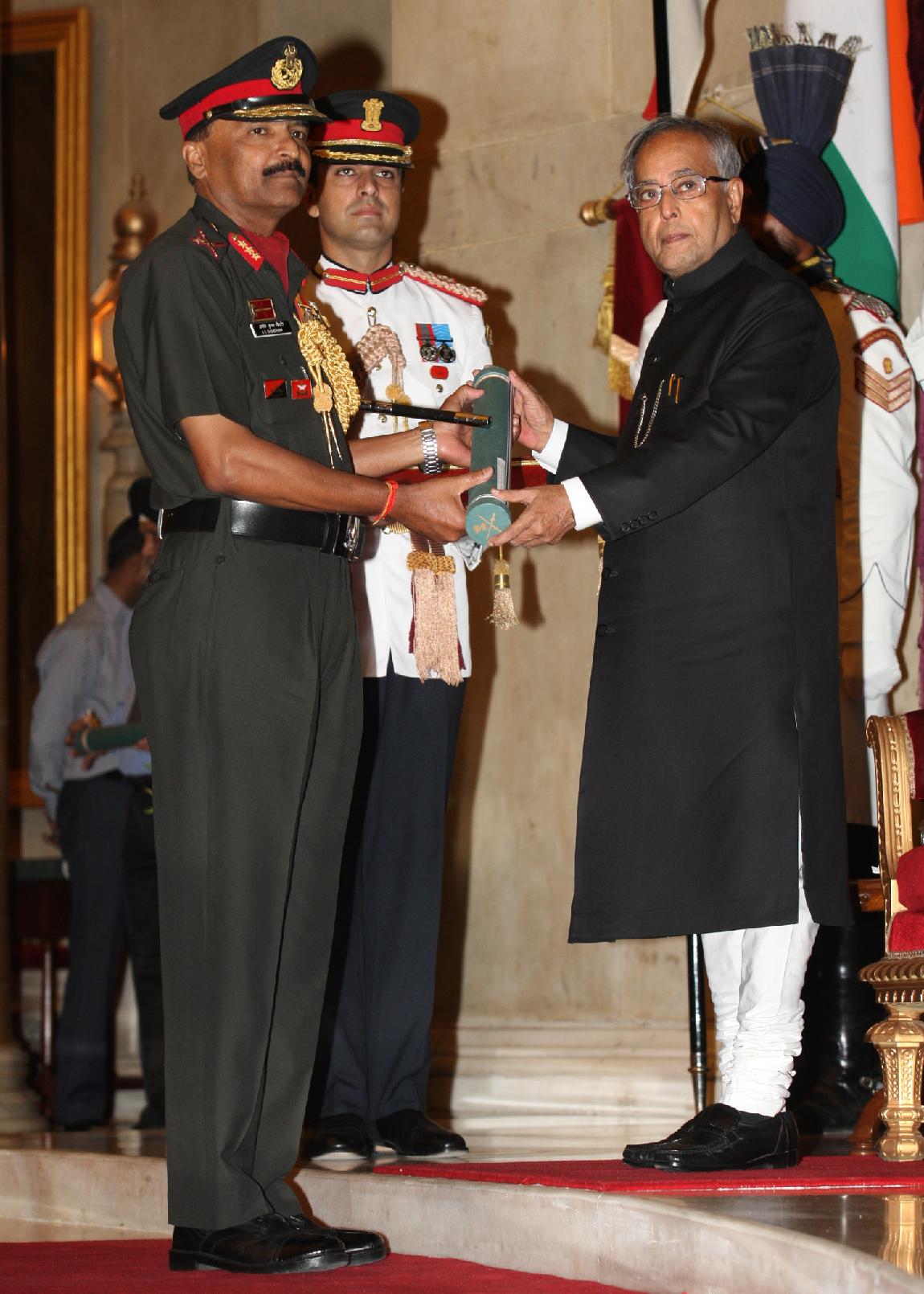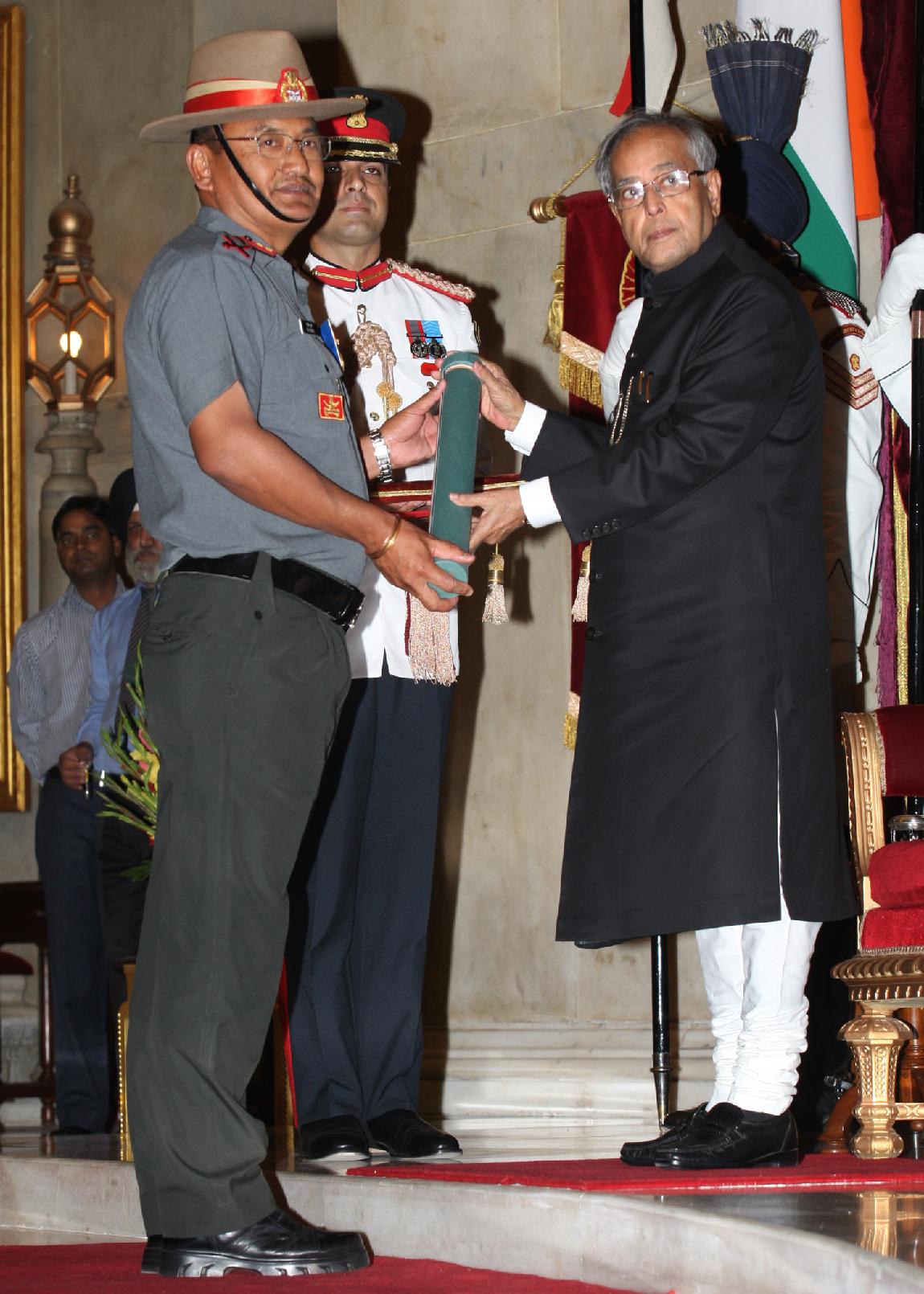 | Caption: | The President of India, Shri Pranab Mukherjee Presenting the Defence Awards at the Darbar Hall of Rashtrapati Bhavan in Delhi on April 27, 2013 |