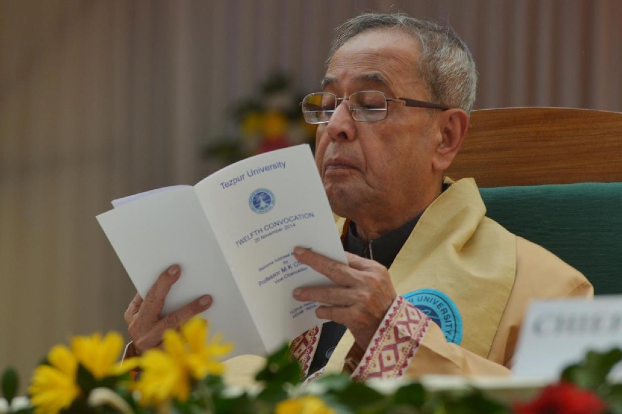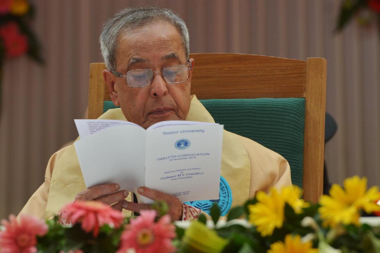 | Caption: | The President of India, Shri Pranab Mukherjee during the 12th Convocation of Tezpur University, (Central University) at Tezpur in Assam on Nov 20, 2014 |