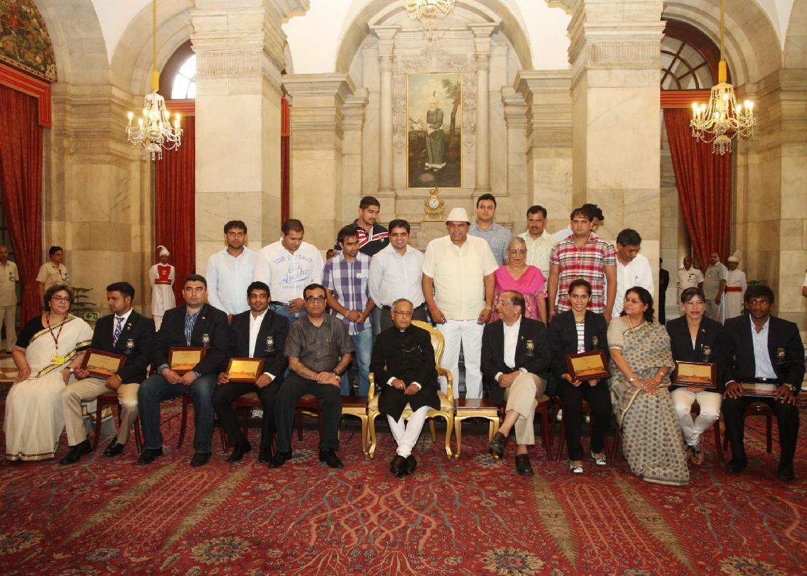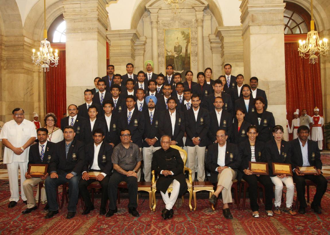 | Caption: | The President of India, Shri Pranab Mukherjee Hosted Reception to Indian Olympic Team and Felicitated to medal winners in last Olympic in London at Rashtrapati Bhavan in Delhi on Aug 18, 2012 |