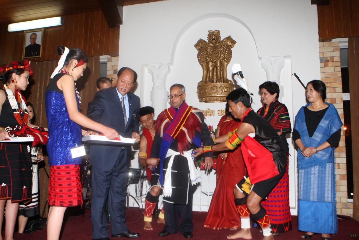 | Caption: | The President of India, Shri Pranab Mukherjee Cultural Program & Banquet hosted by Governor of Nagaland on 14 May 2013 |