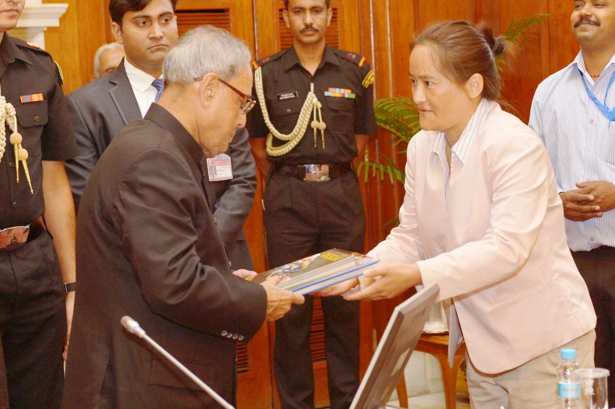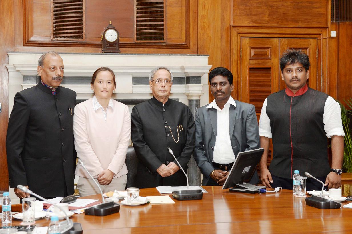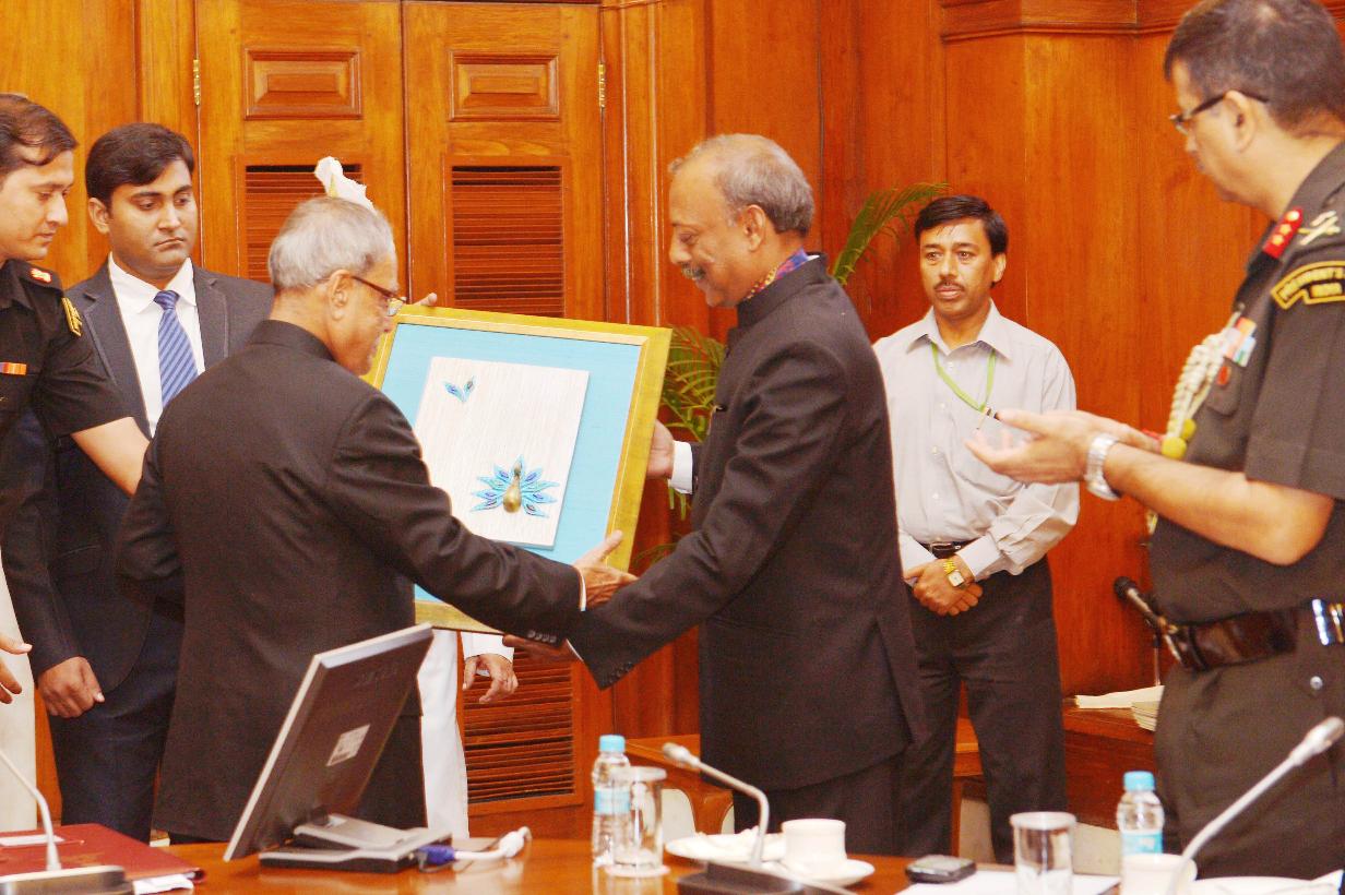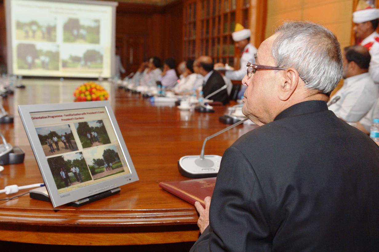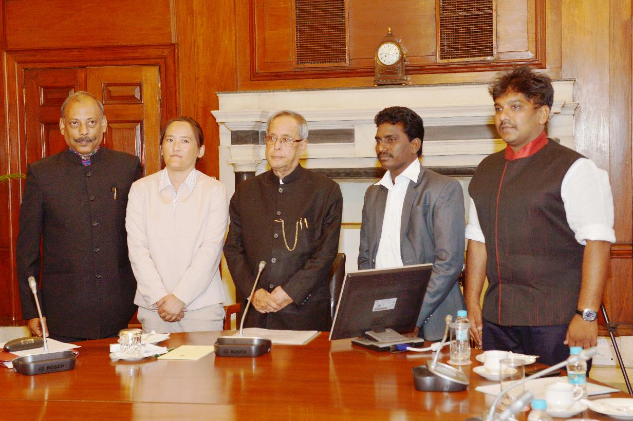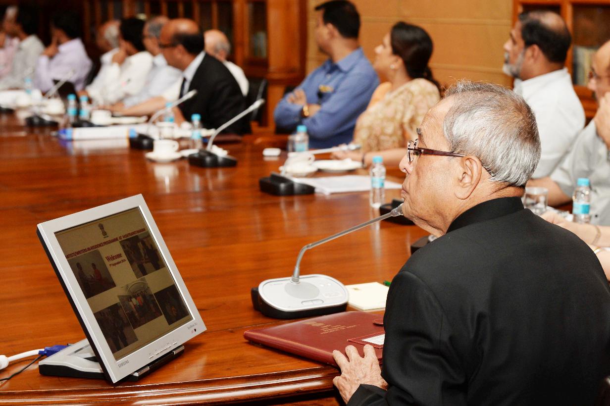 | Caption: | The Participants of In-Residence Programme for Writers and Artists' calling on the President of India, Shri Pranab Mukherjee at Rashtrapati Bhavan in New Delhi on Sep 22, 2014 |