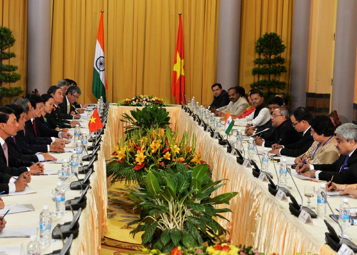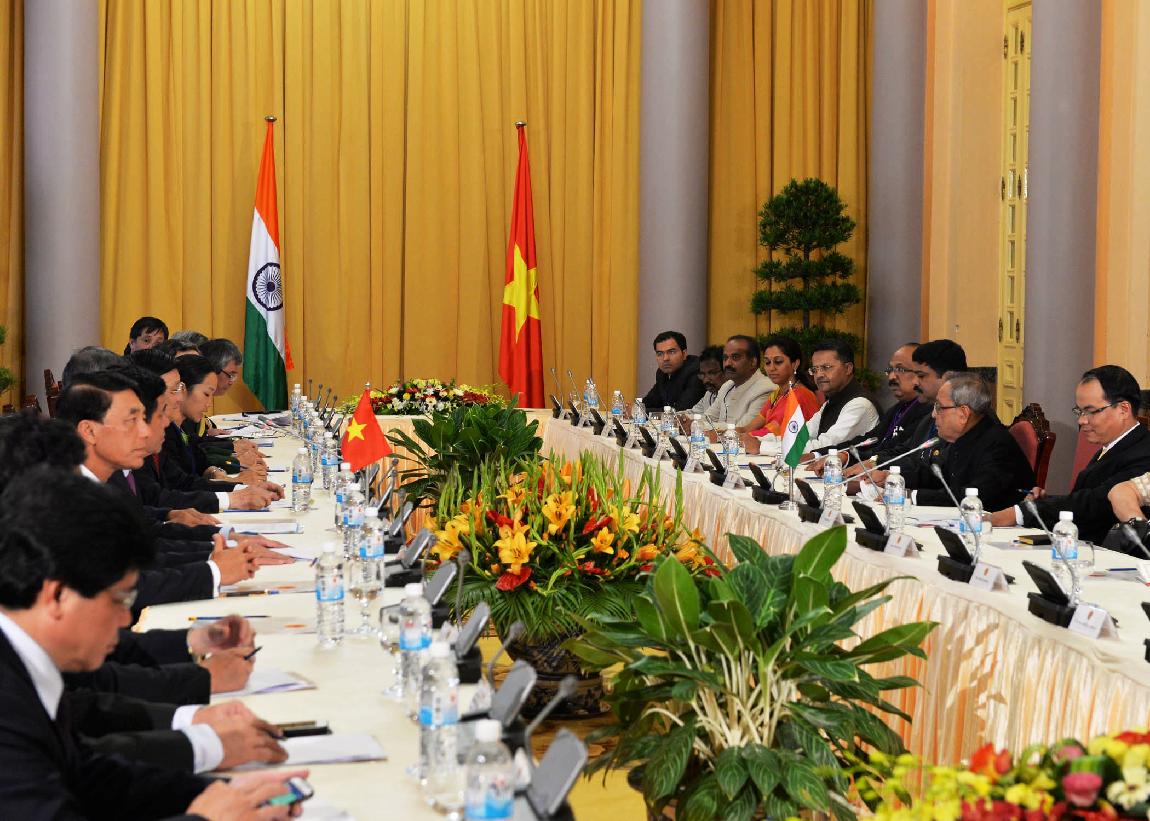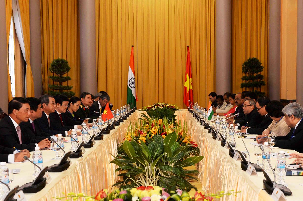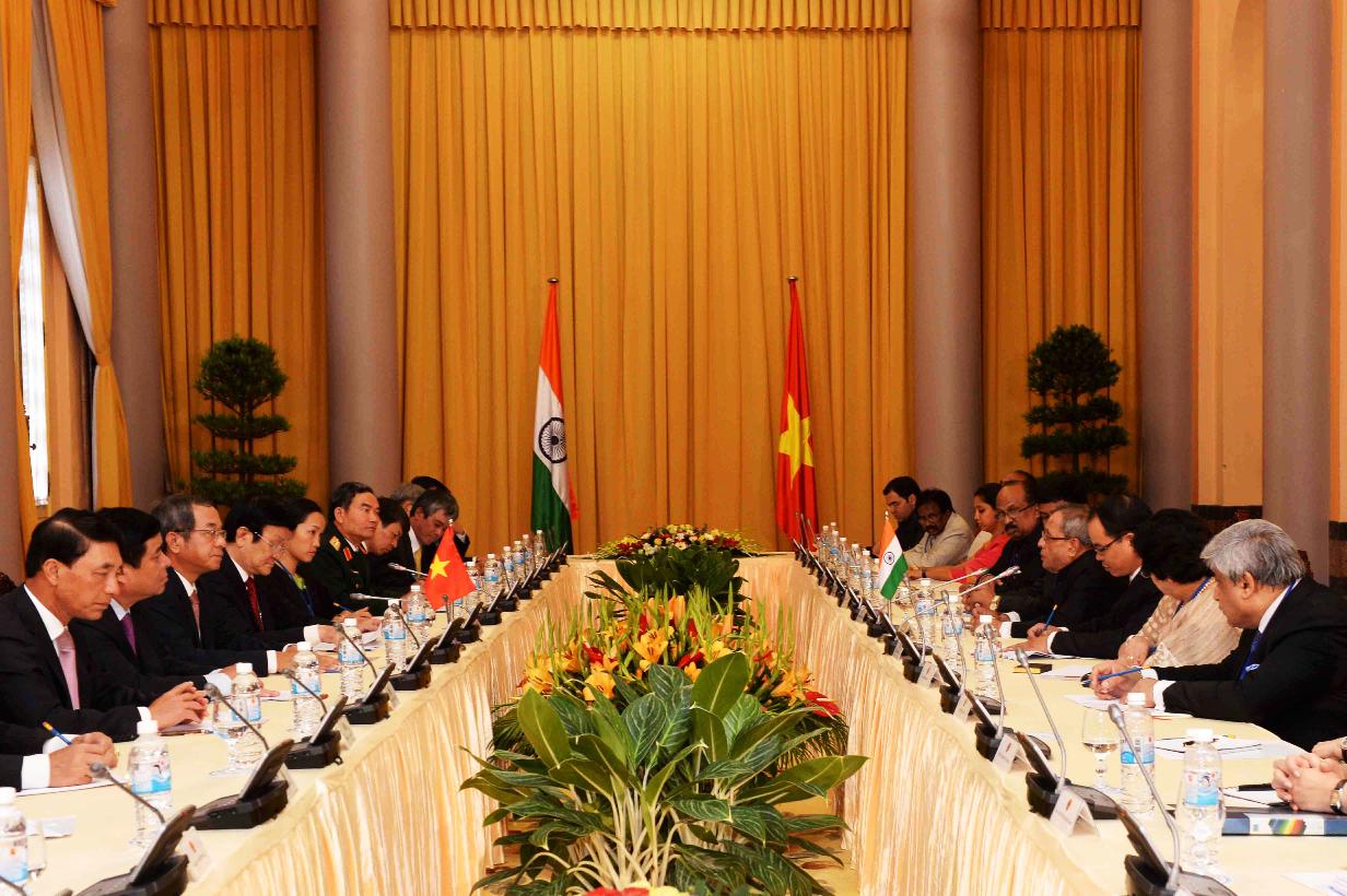 | Caption: | The President of India, Shri Pranab Mukherjee during the Delegation Level Talks during his visit to the Socialist Republic of Vietnam at Presidential Palace at Hanoi in Vietnam on Sep 15, 2014 |