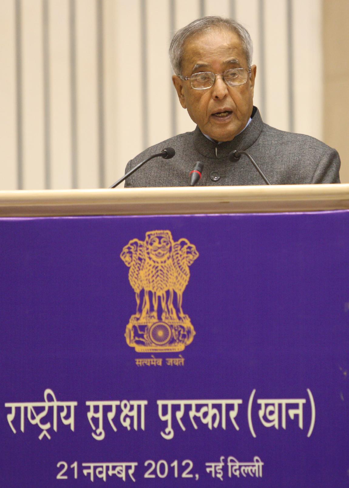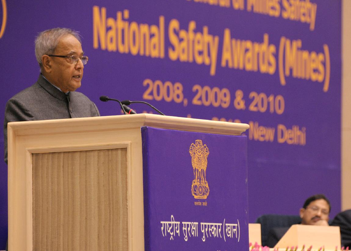 | Caption: | The President of India, Shri Pranab Mukherjee Presenting the National Safety Awards (Mines) at Vigyan Bhavan in Delhi on Nov 21, 2012 |