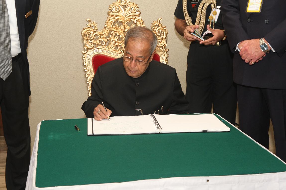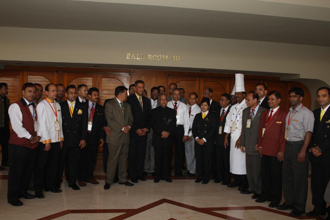 | Caption: | The President of India, Shri Pranab Mukherjee singing on book & Group Photographs with Hotel Staff at Hotel Pan Pacific Sonargoan Dhaka Bangladesh on 5 March 2013 |