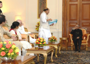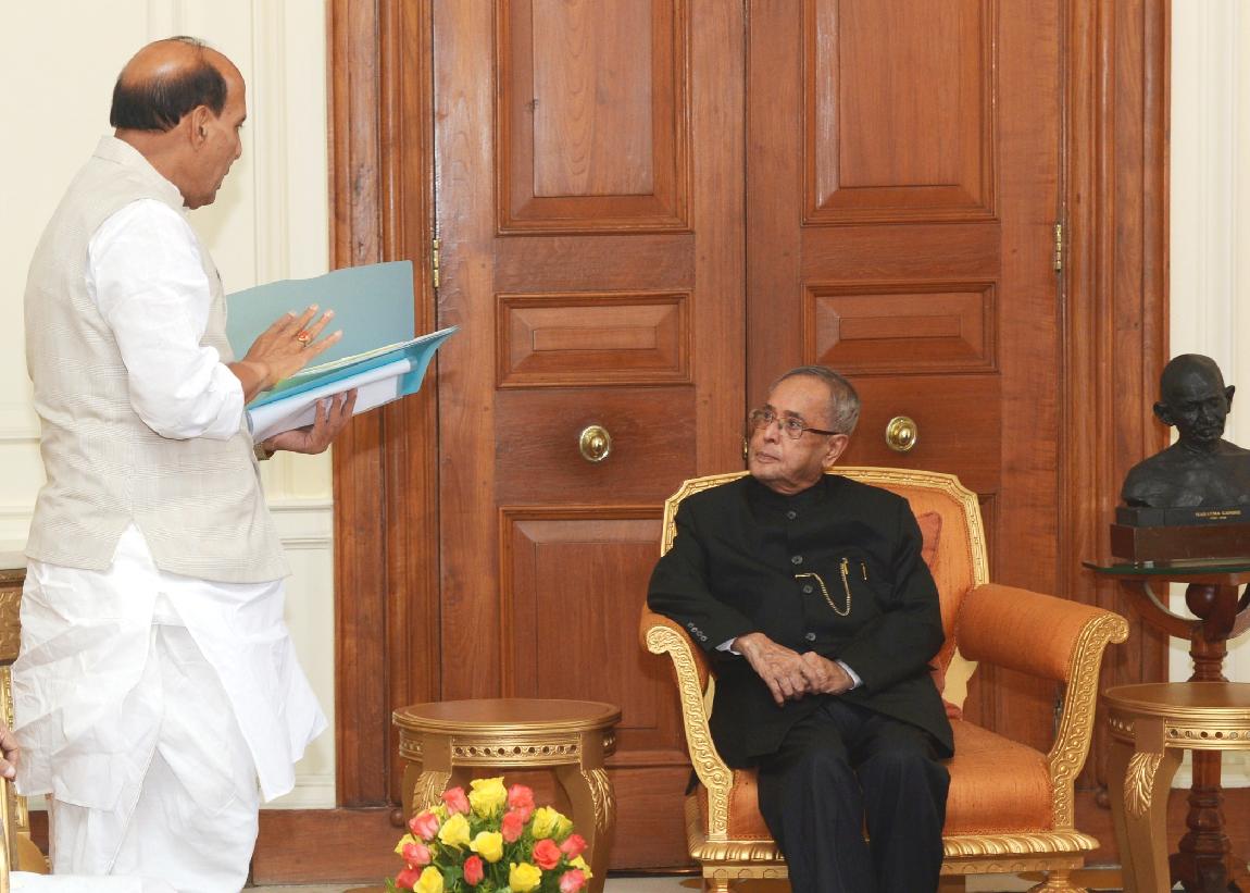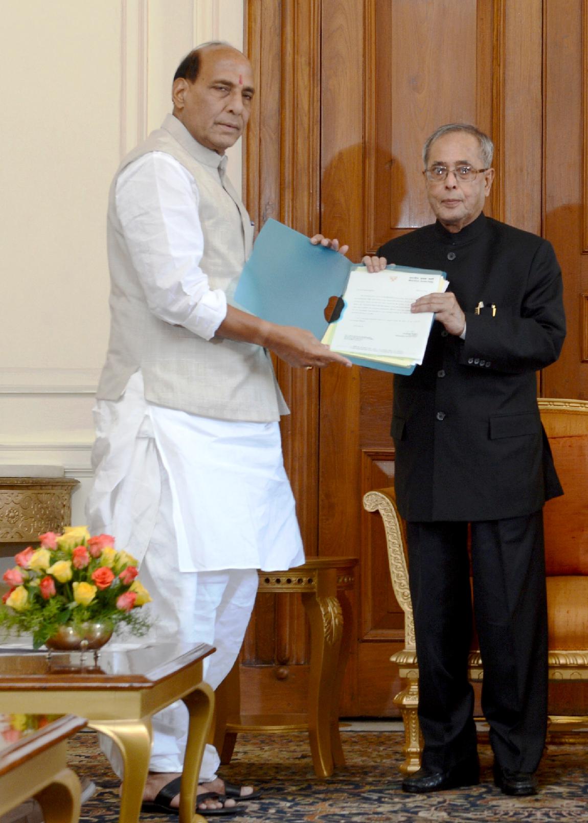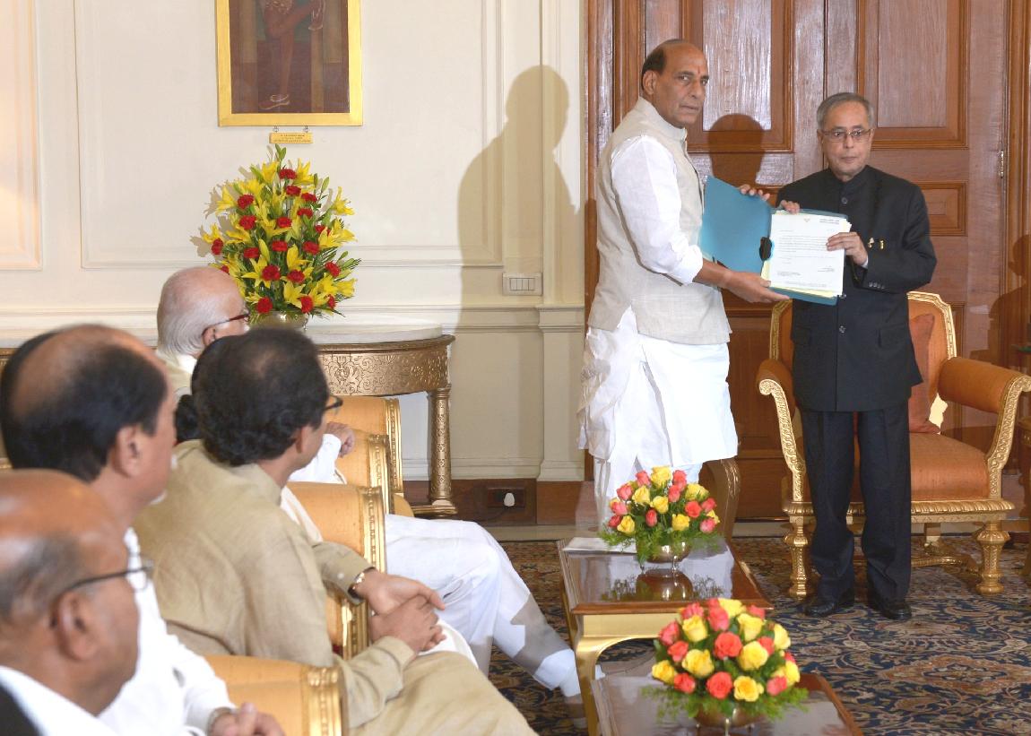 | Caption: | The President of India, Shri Pranab Mukherjee meeting with the Leaders of National Democratic Alliance (NDA) led by the President of the Bharatiya Janata Party, Shri Rajnath Singh at Rashtrapati Bhavan in New Delhi on May 20, 2014 |