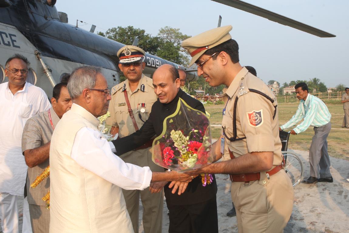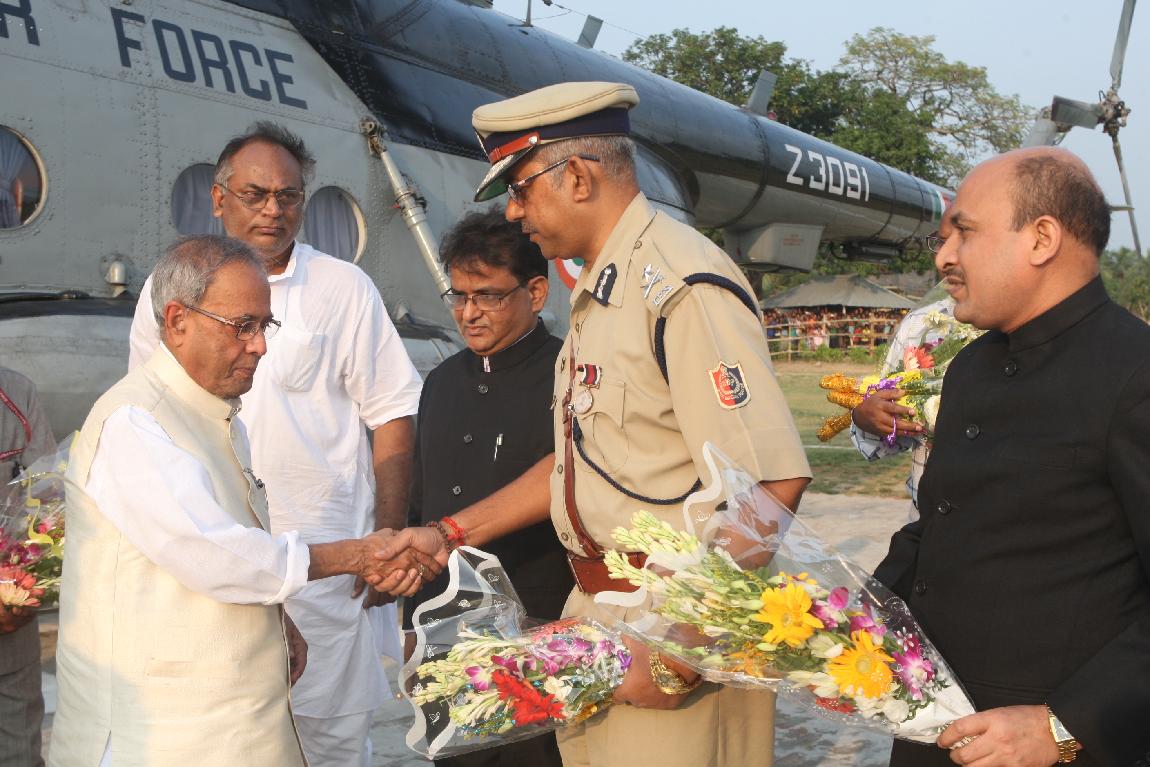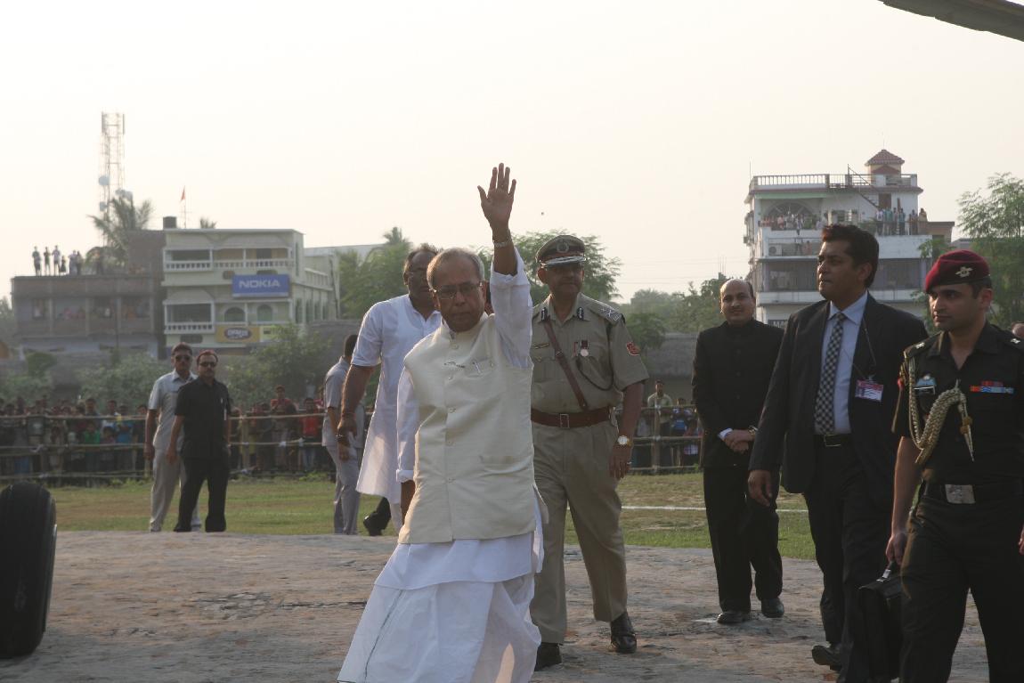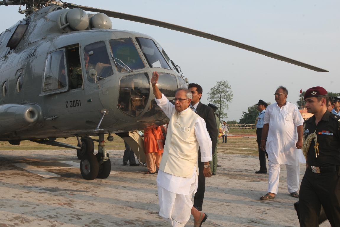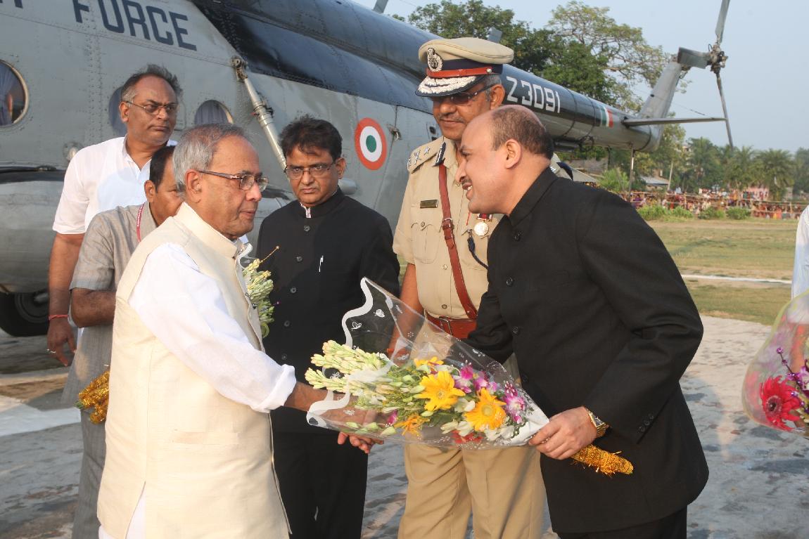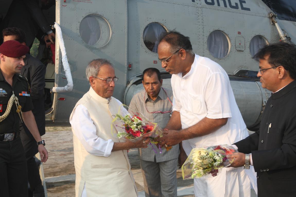 The President of India, Shri Pranab Mukherjee Arriving at Kirnahar Helipad on October 20, 2012