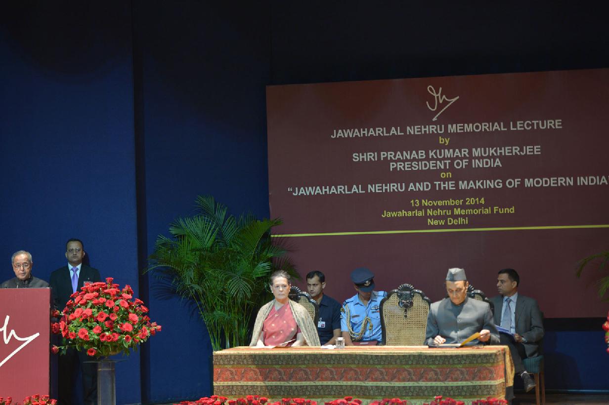 | Caption: | The President of India, Shri Pranab Mukherjee during the Jawaharlal Nehru Memorial Lecture being organized on the eve of 125th Birth Anniversary of Pt Jawaharlal Nehru by Jawaharlal Nehru Memorial Fund at Nehru Library Auditorium, Teen Murti House in New Delhi on Nov 13, 2014 |