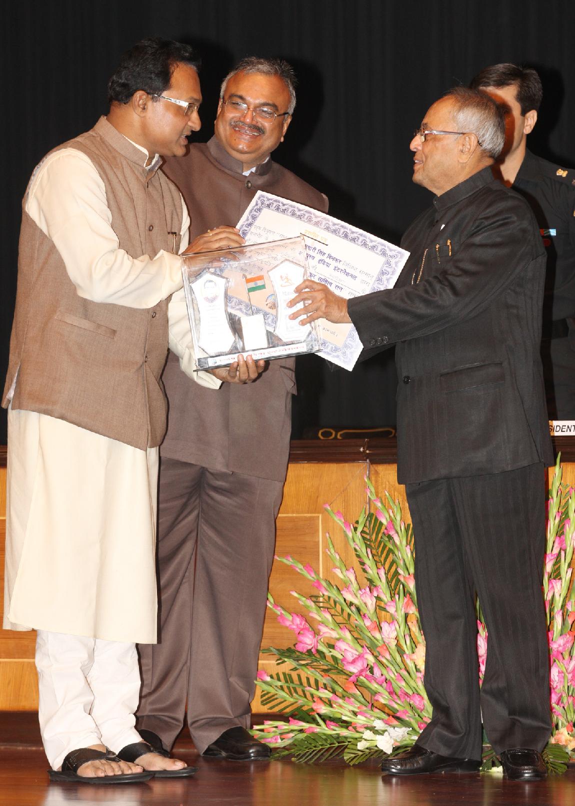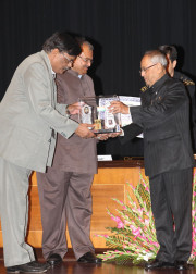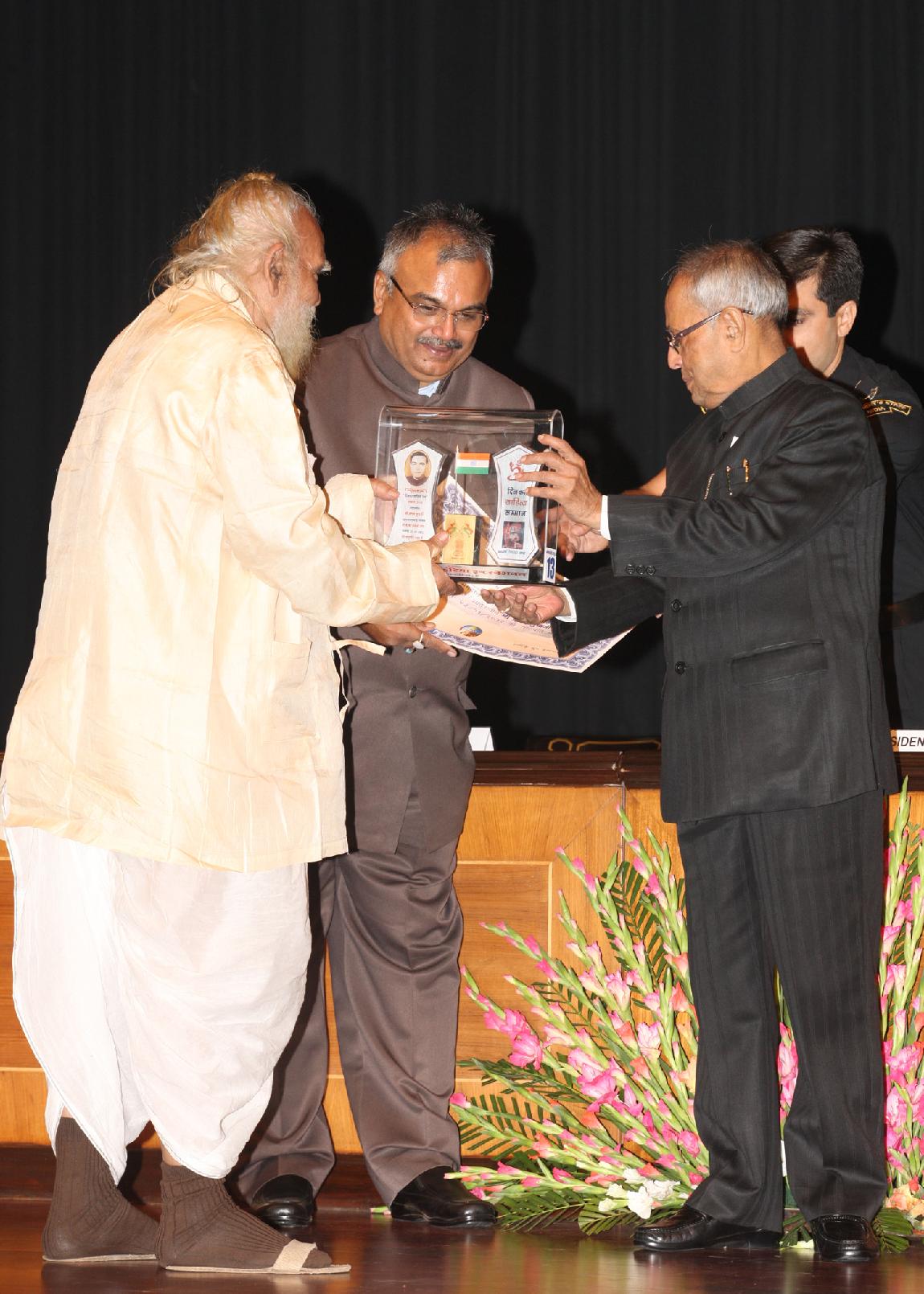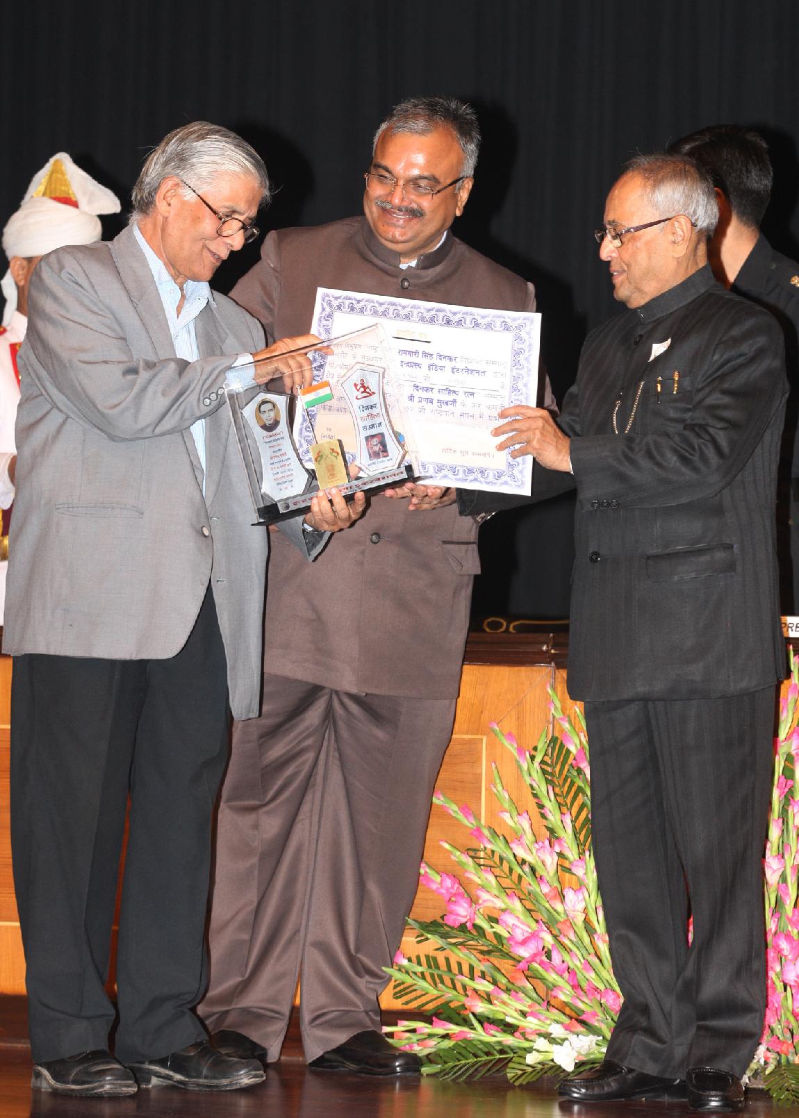 | Caption: | The President of India, Shri Pranab Mukherjee Presenting the Dinkar Sahitya Samman at Rashtrapati Bhavan Auditorium in Delhi on Nov 23, 2012 |